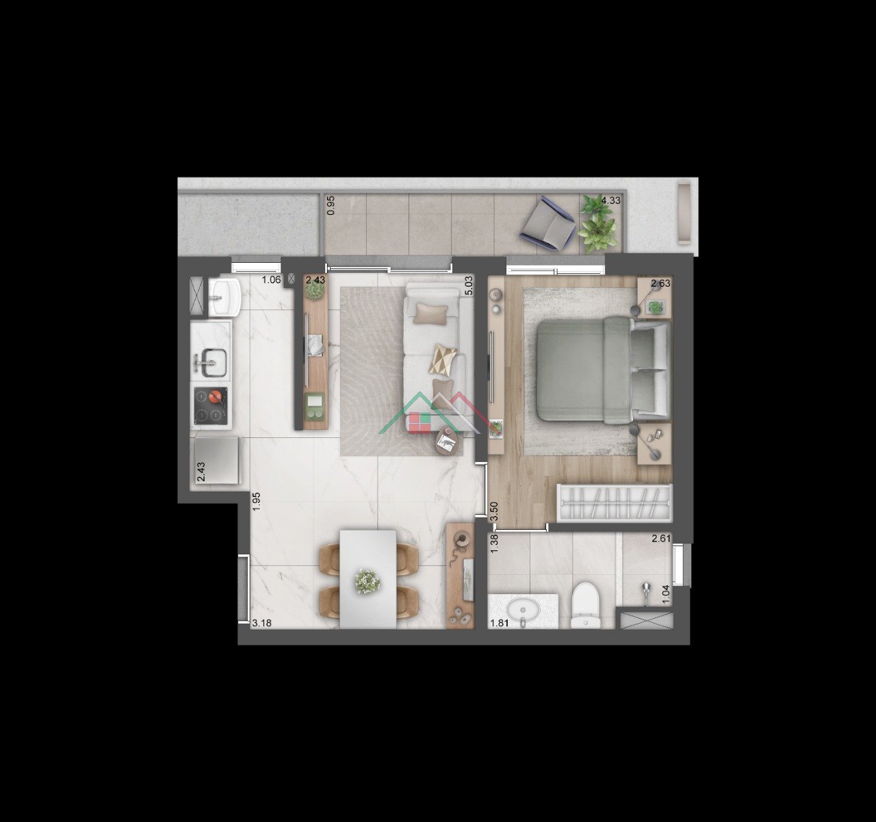 Excelentes apartamentos com 43m², 01 dormitório(que é uma SUÍTE), cozinha americana e SACADA! E com 23m² privativos, lindos Studios com 01 dormitório integrado ao living!