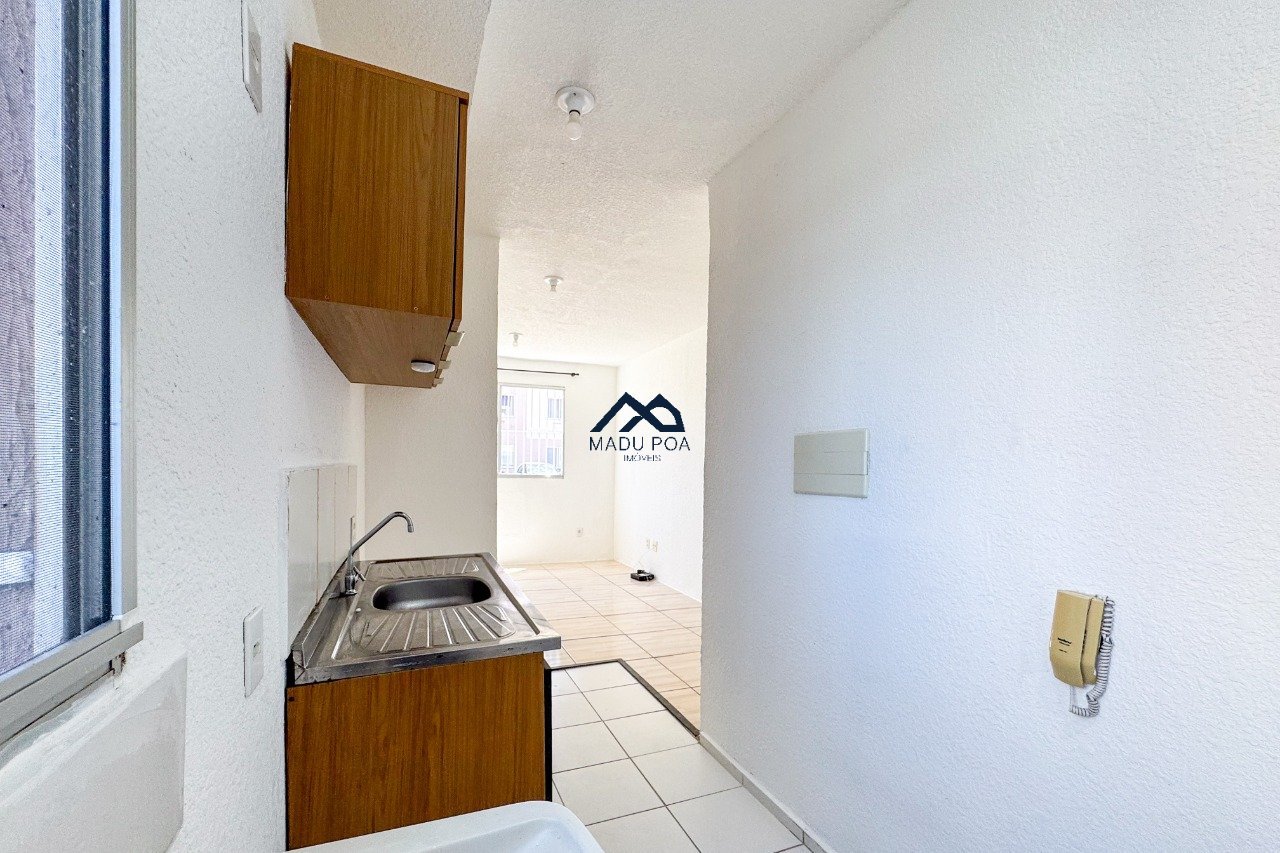 O imóvel conta com living para dois ambientes, cozinha com móveis planejados, área de serviço, 2 dormitórios e banheiro social.