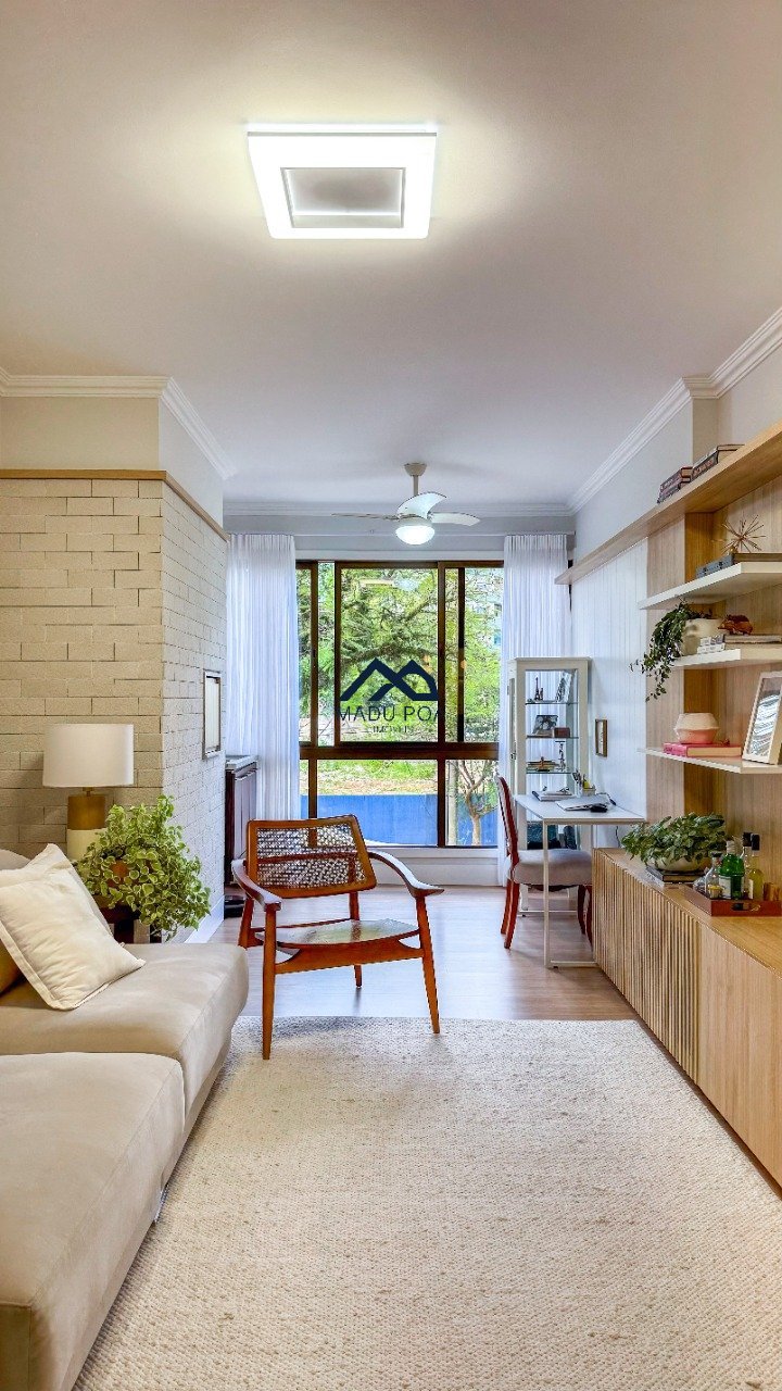 O imóvel foi todo repaginado por arquiteto e conta com amplo living para dois ambientes, lavabo, cozinha integrada com churrasqueira, área de serviço separada, 3 dormitórios, sendo 1 suíte, semi- mobiliado e duas vagas de garagem individualizadas.