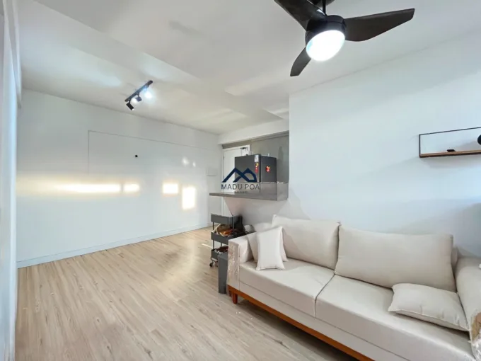 Condomínio com portaria virtual, salão de festas, churrasqueira e piscina coletiva, quadra de esportes.