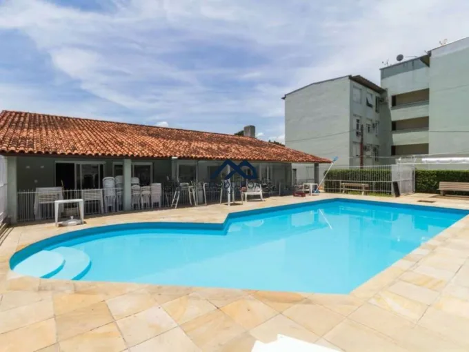 Living com piso em tabuão, espera para lareira e sacada com churrasqueira, cozinha espaçosa e área de serviço separada. Três amplos dormitórios, sendo uma suíte, banheiro social. Duas vagas cobertas e escrituradas.