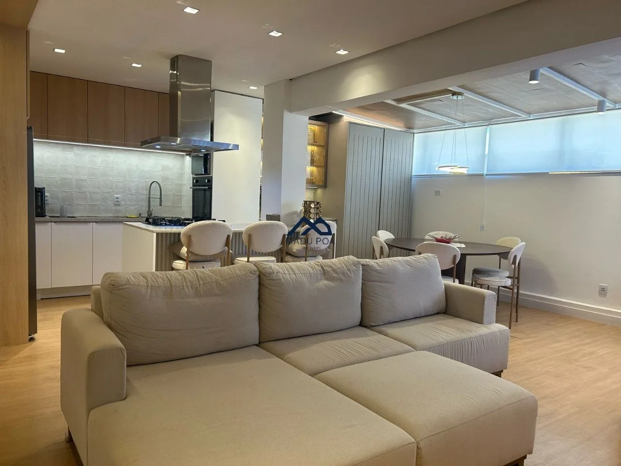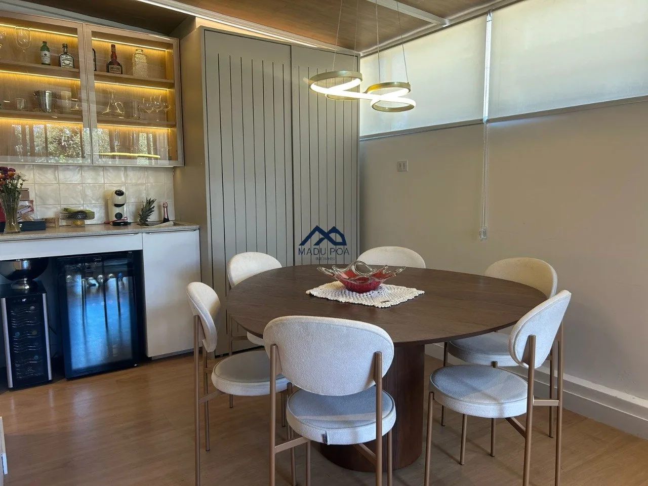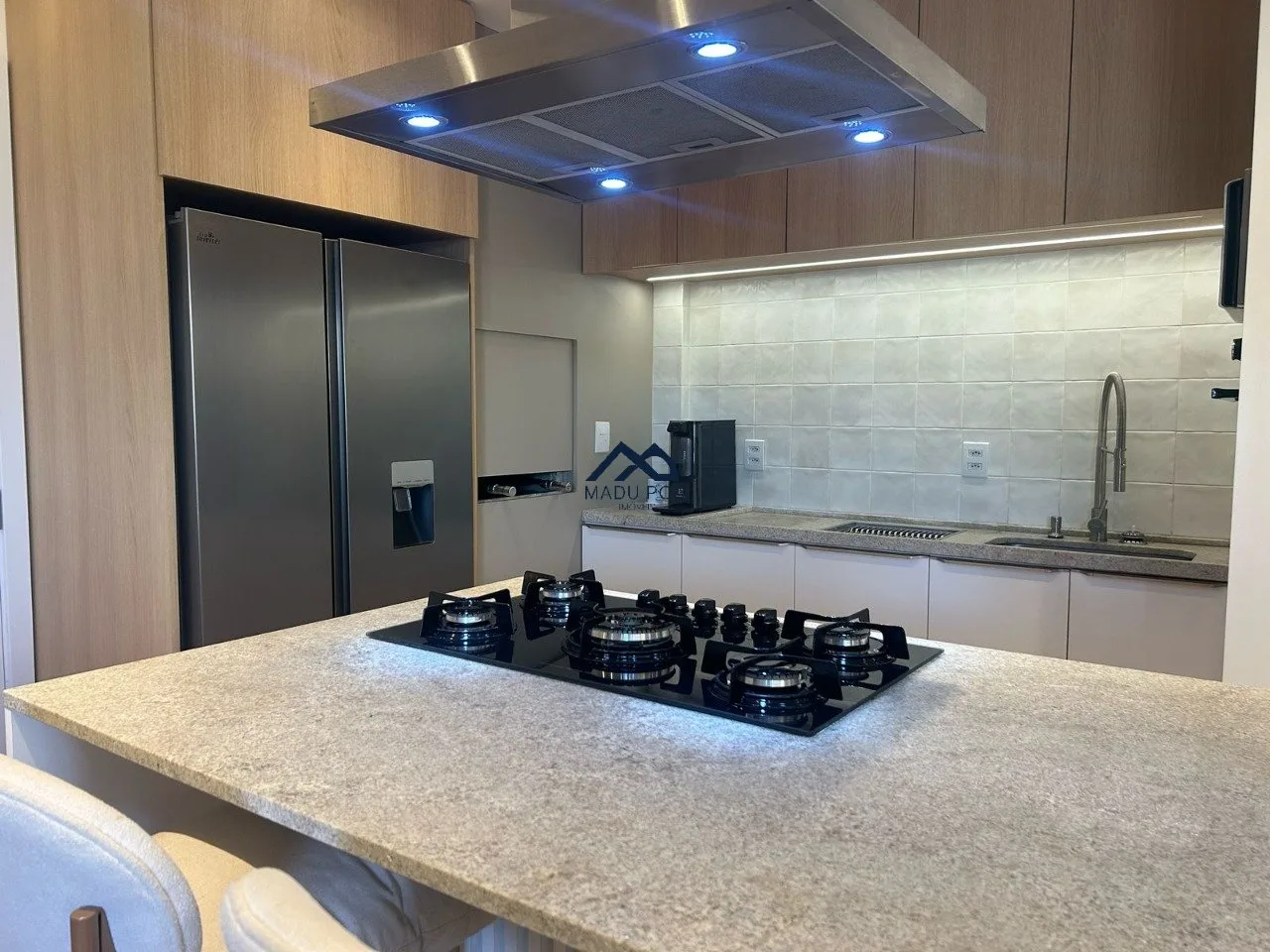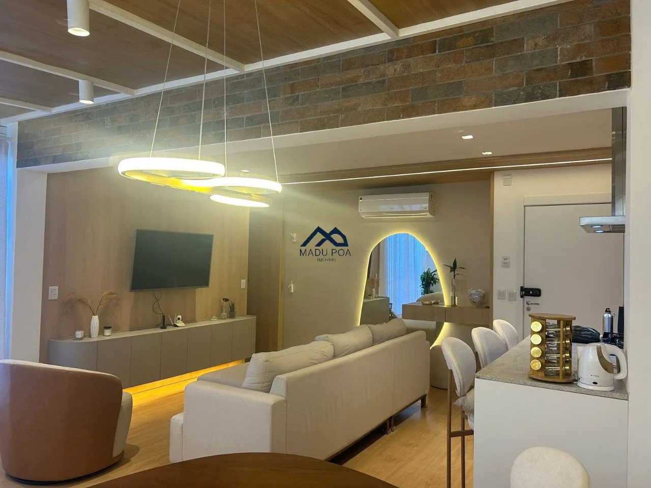 O imóvel conta com um amplo living para dois ambientes, cozinha americana planejada com ilha, churrasqueira, área de serviço, pátio com jacuzzi, dois dormitórios, sendo uma suíte e banheiro social.