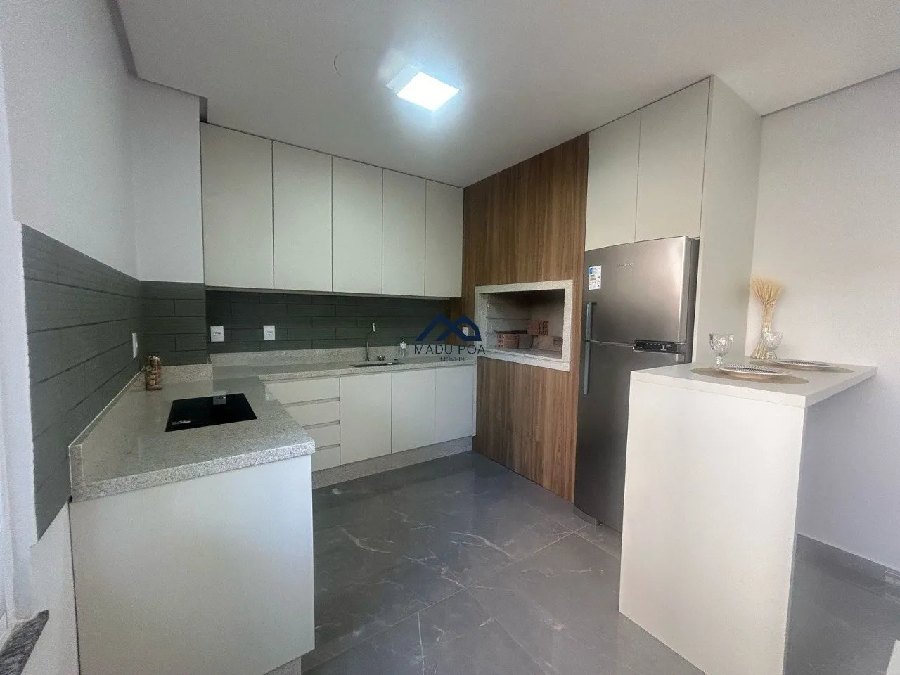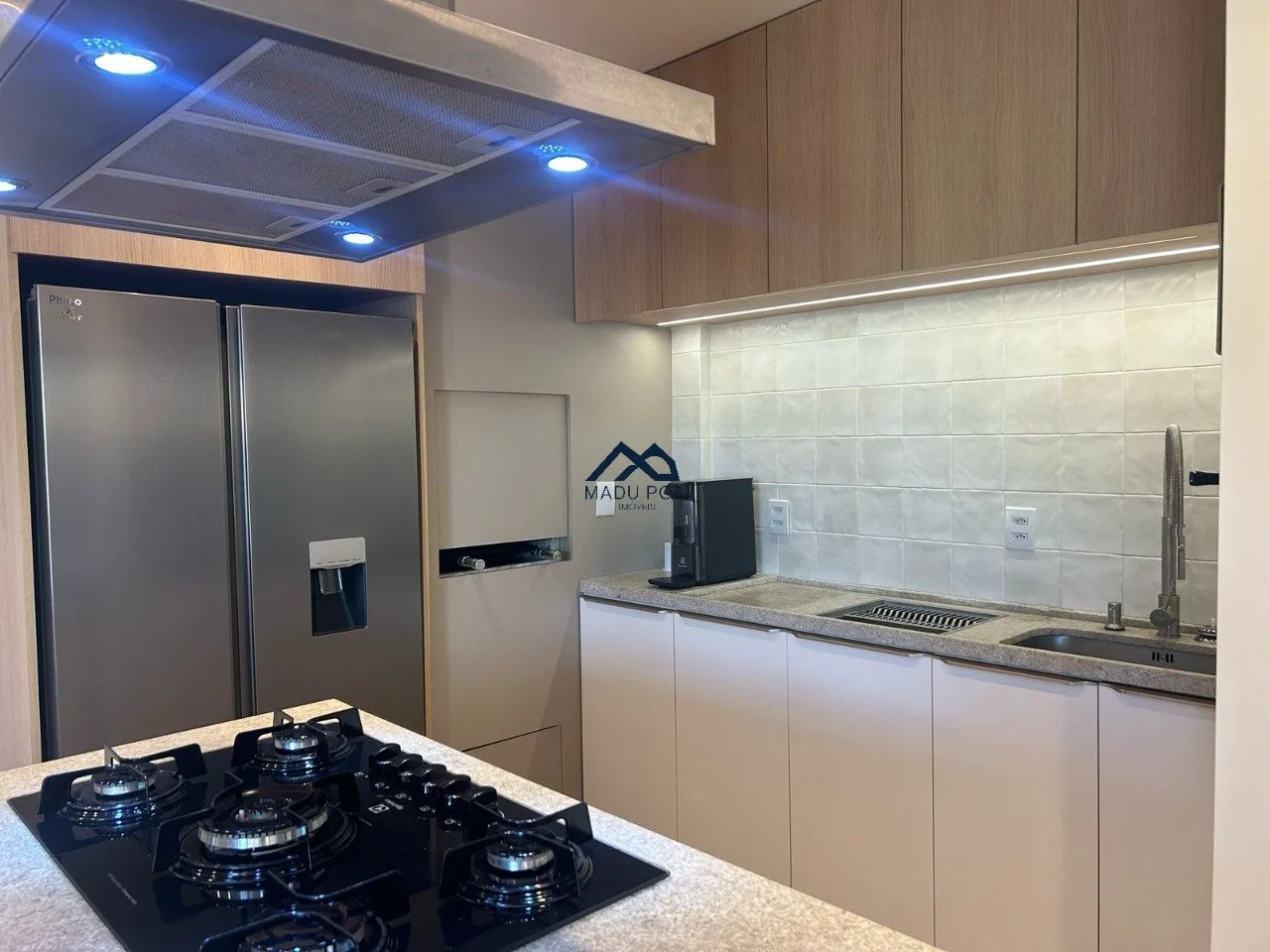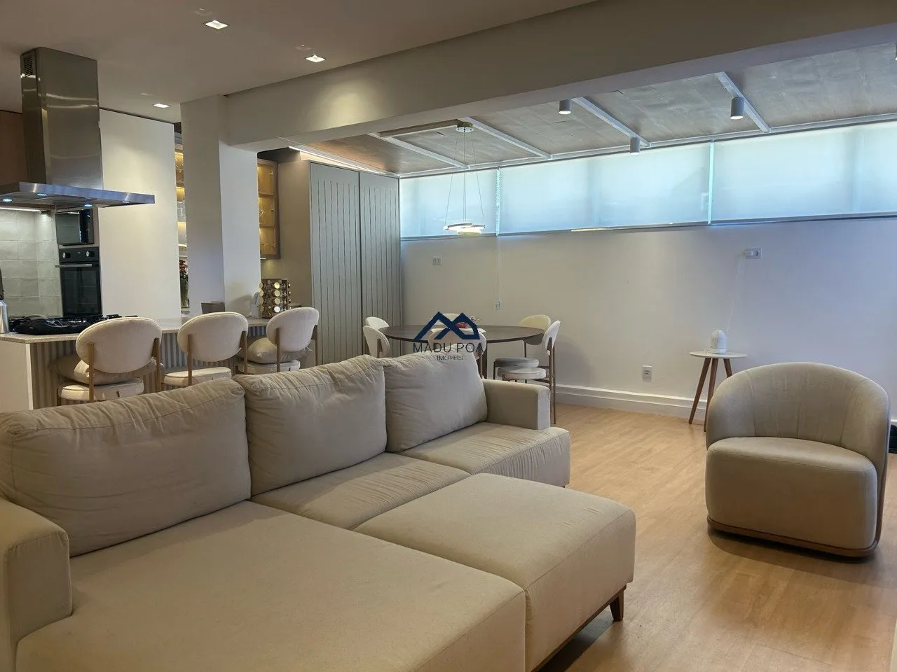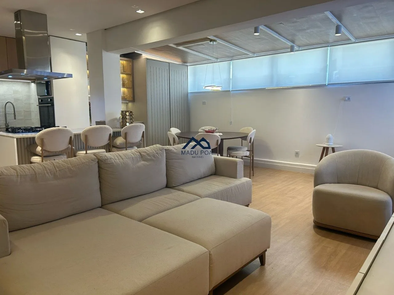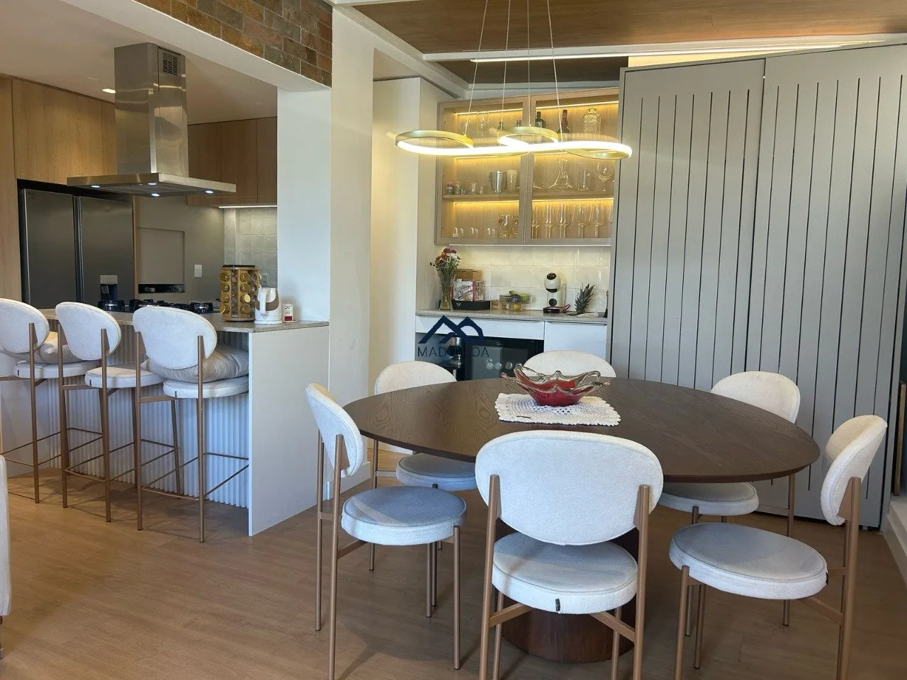 O imóvel conta com um amplo living para dois ambientes, cozinha americana planejada com ilha, churrasqueira, área de serviço, pátio com jacuzzi, dois dormitórios, sendo uma suíte e banheiro social.