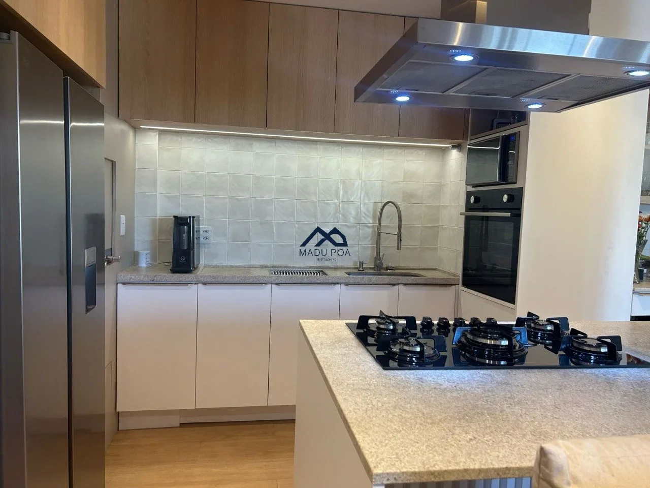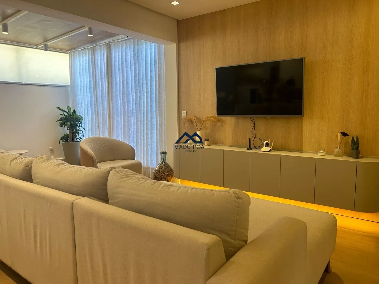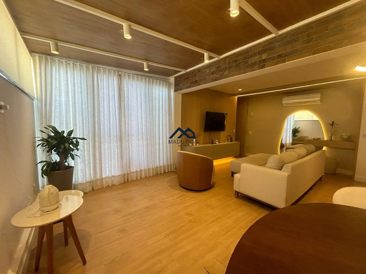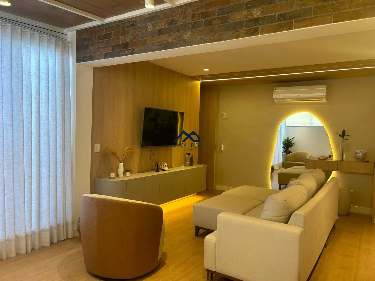 O imóvel conta com um amplo living para dois ambientes, cozinha americana planejada com ilha, churrasqueira, área de serviço, pátio com jacuzzi, dois dormitórios, sendo uma suíte e banheiro social.