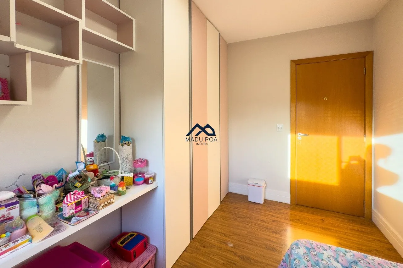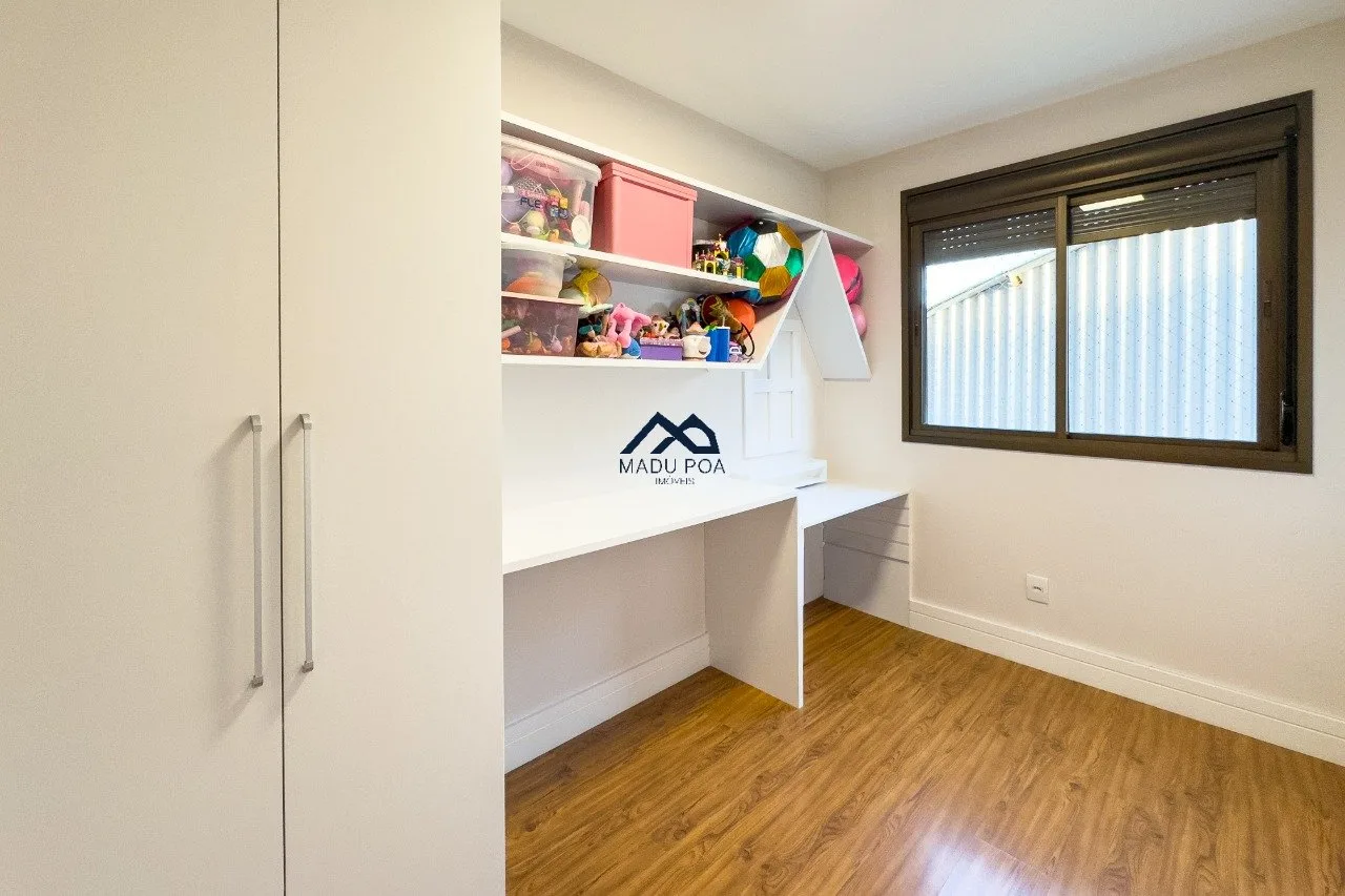 São três dormitórios com moveis fixos, sendo uma suíte e um banheiro social.