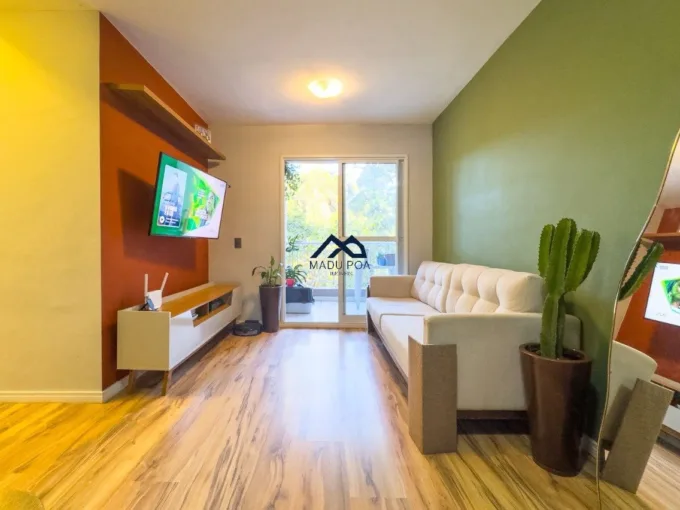 Apartamento à venda no Centro Histórico, com 64m² privativos, amplo living para dois ambientes com aberturas que proporcionam iluminação natural e uma linda vista para a praça. A planta inteligente faz com que a cozinha e área de serviço seja bem reservada da área social. Dois dormitórios e um banheiro social.