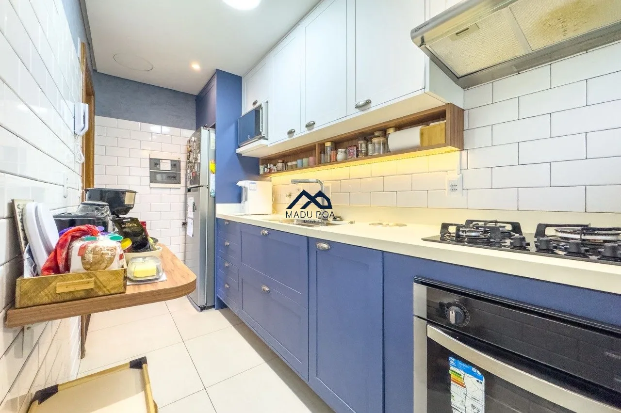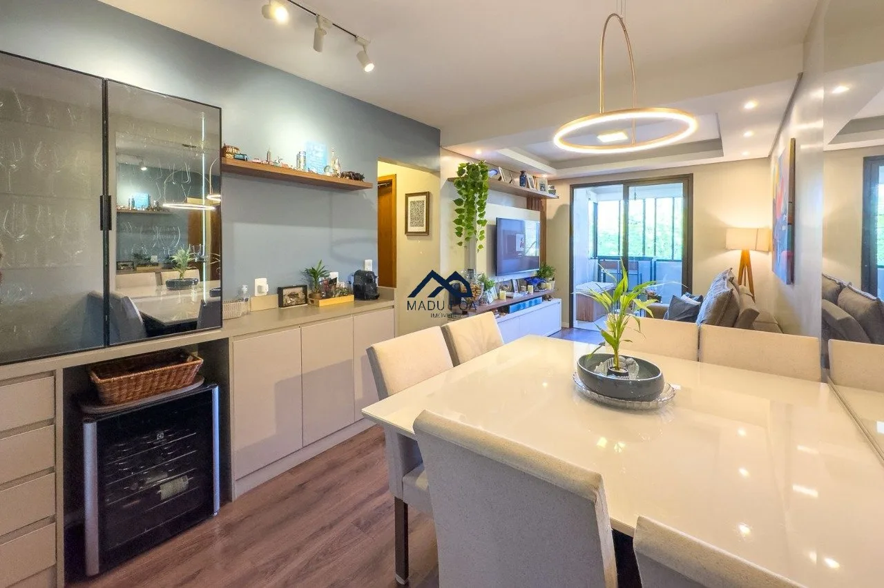 Living amplo para dois ambientes, cozinha com móveis sob medida e área de serviço separada. Sacada ampla fechada com churrasqueira e espaço molhado.