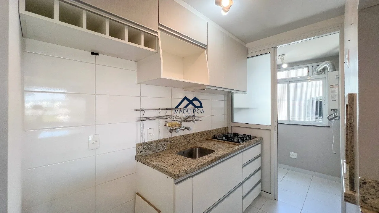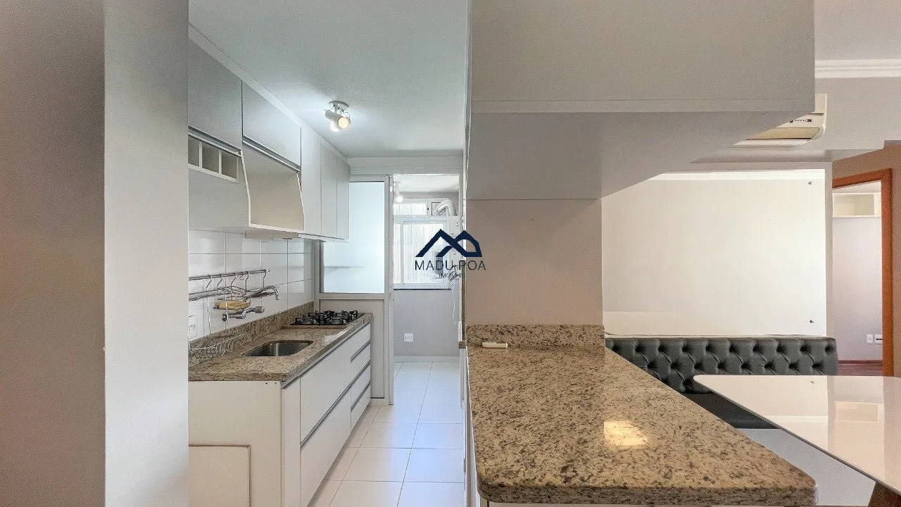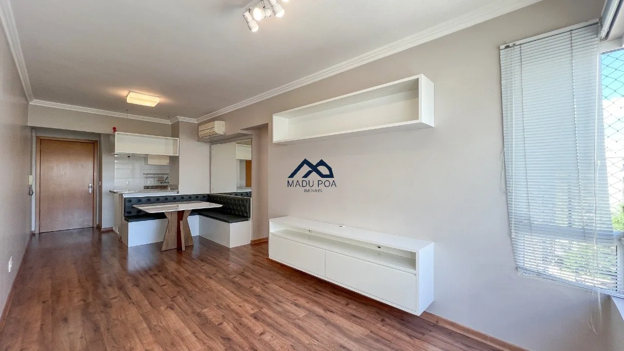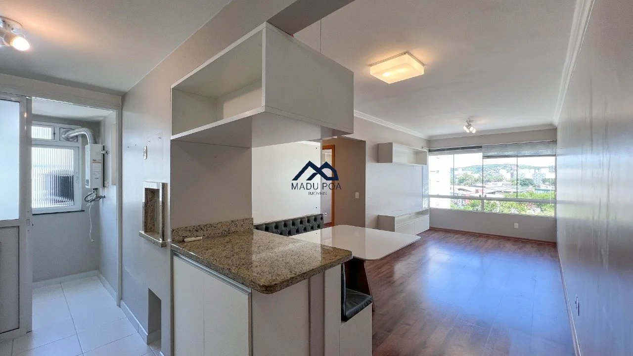 Apartamento à venda no Bairro Cristal, com planta de 71,36m² DESOCUPADO. Dividido em Living amplo para dois ambientes, cozinha americana com móveis sob medida, área de serviço separada, três dormitórios com armários, banheiro social. Uma vaga de garagem.