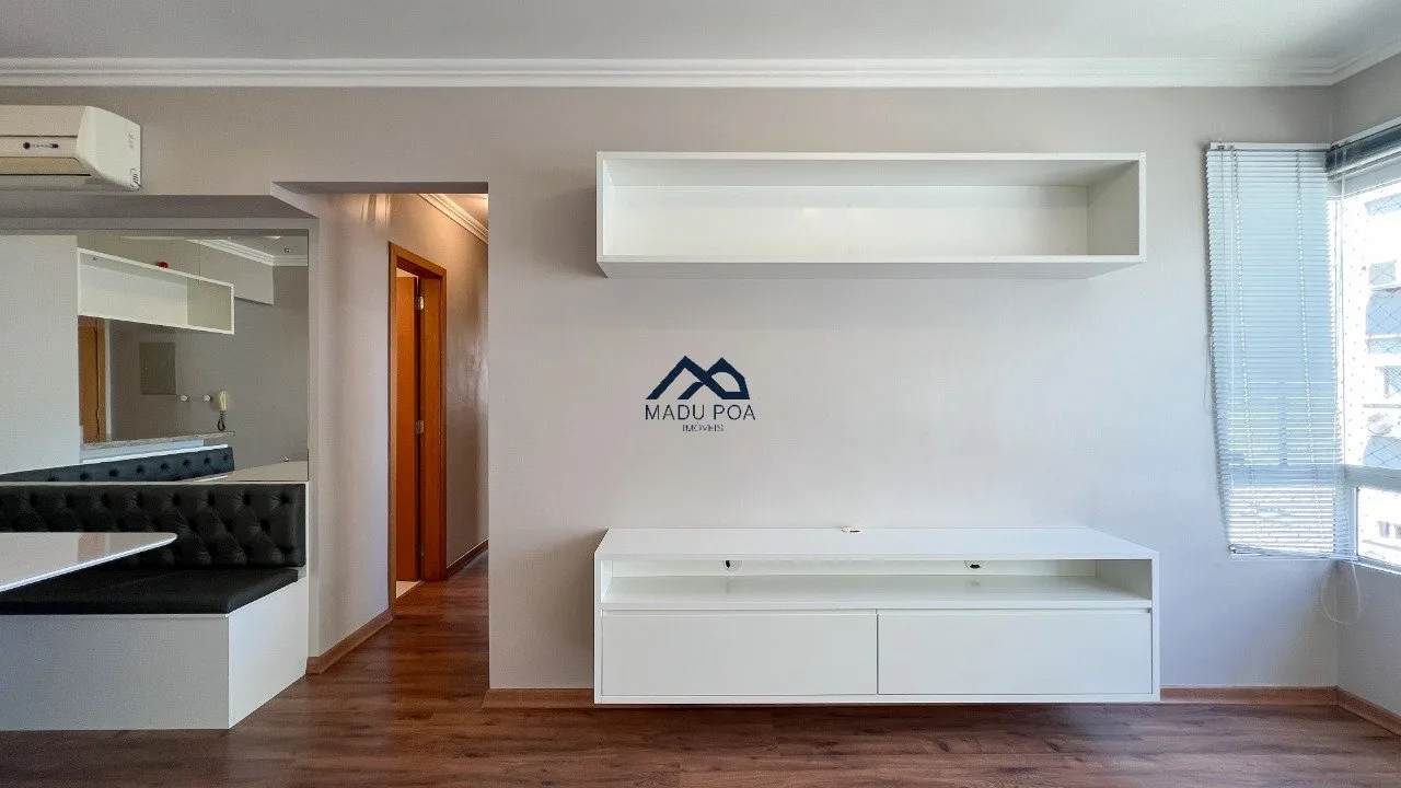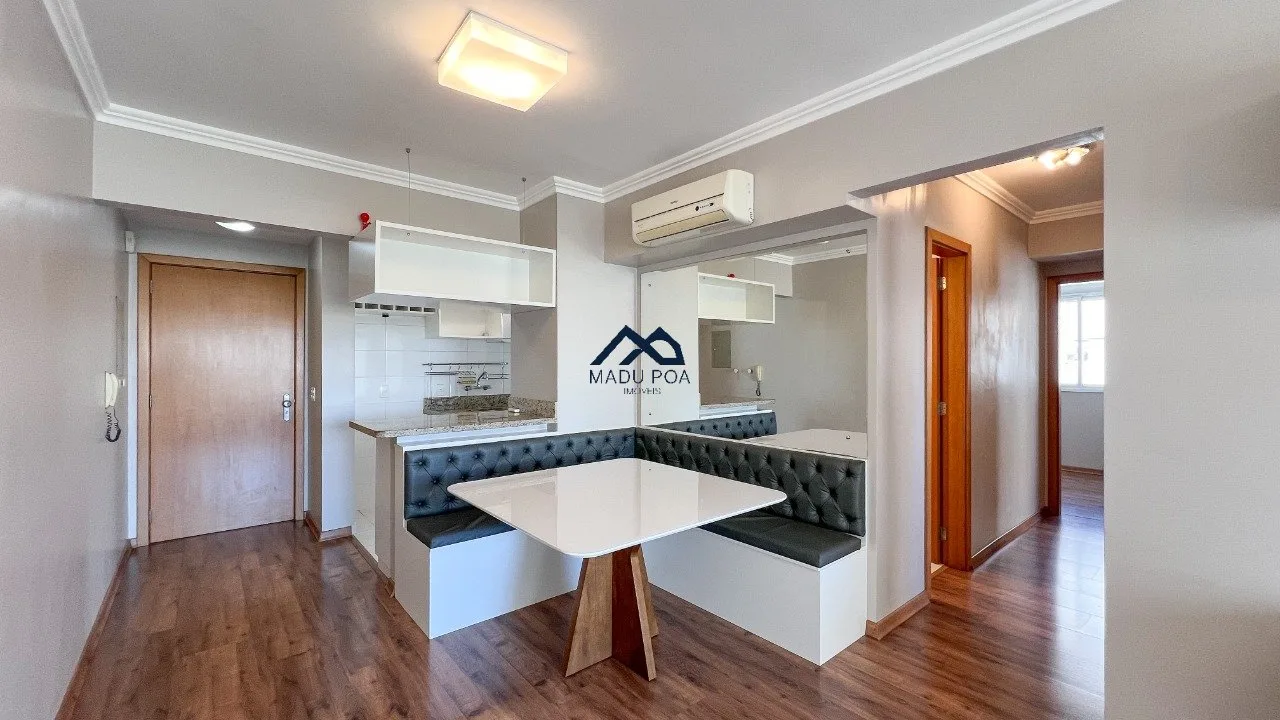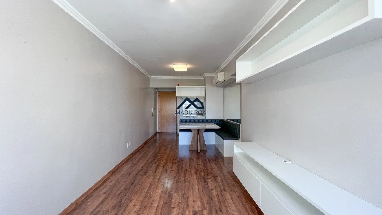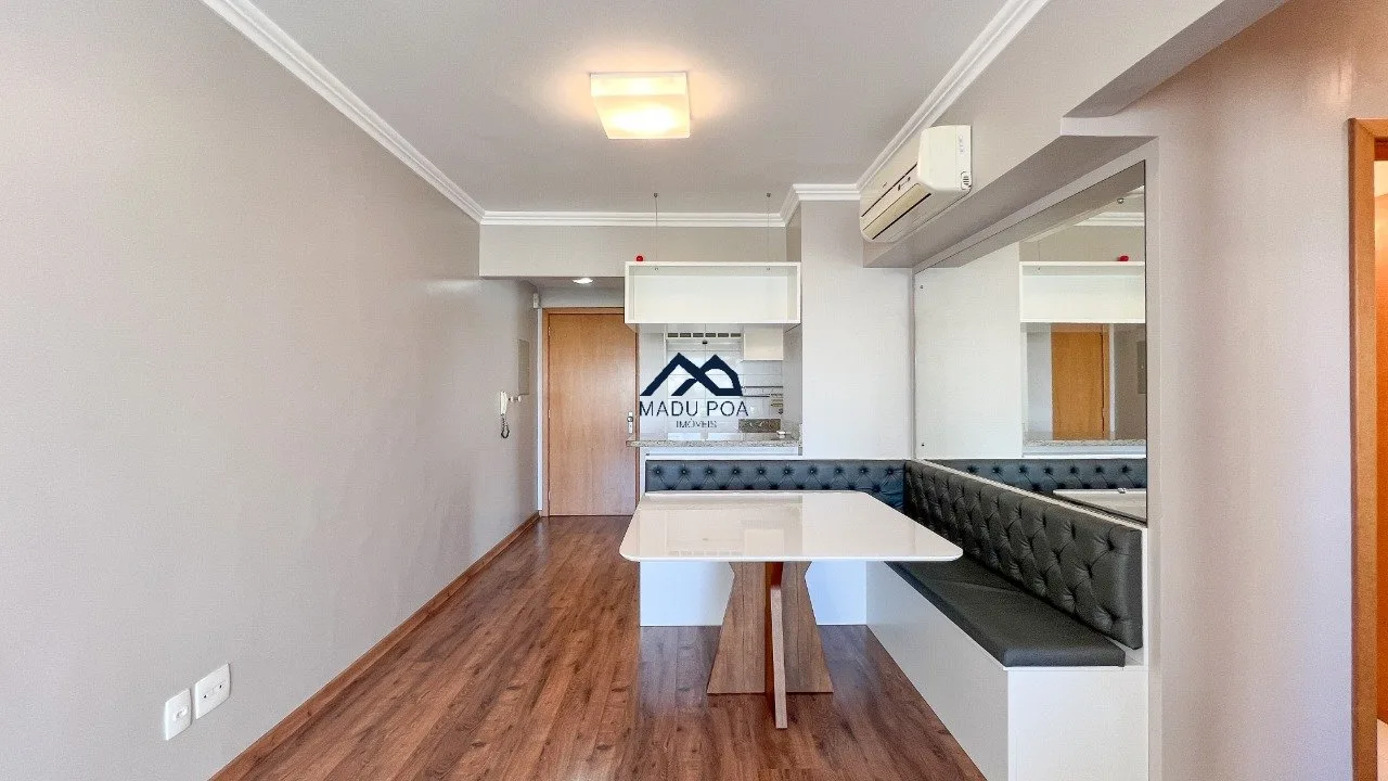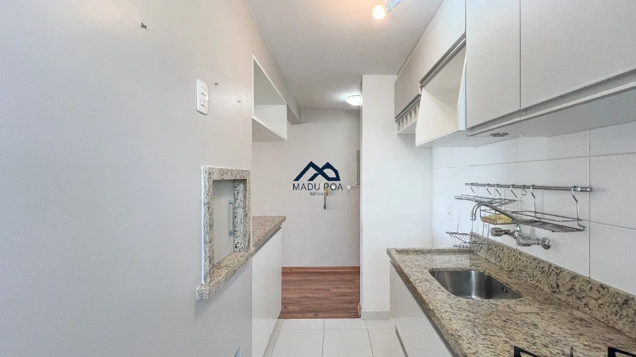 Apartamento à venda no Bairro Cristal, com planta de 71,36m² DESOCUPADO. Dividido em Living amplo para dois ambientes, cozinha americana com móveis sob medida, área de serviço separada, três dormitórios com armários, banheiro social. Uma vaga de garagem.