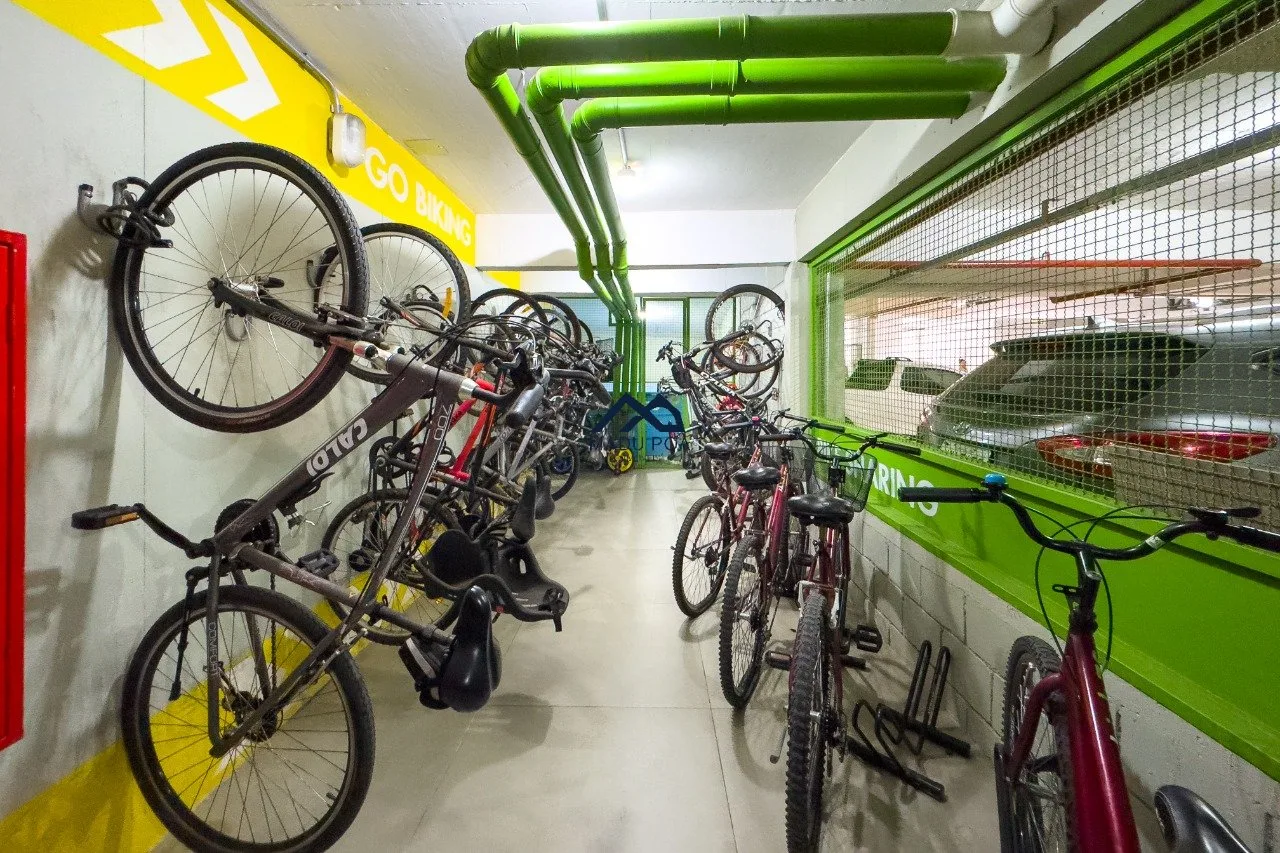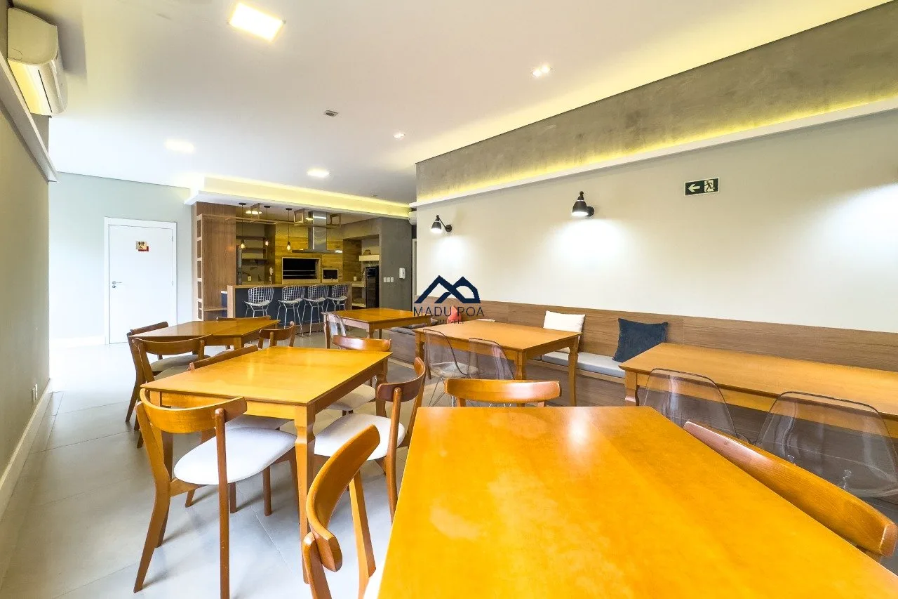 Condomínio com salão de festas completo com churrasqueira e forno de pizza, espaço fitness, playground, portaria virtual e zelador.
