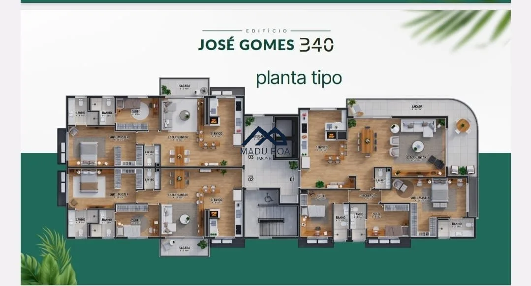 Apartamento com três suítes, 171m², lavabo, Cozinha com churrasqueira, sacada e duas vagas de garagem.