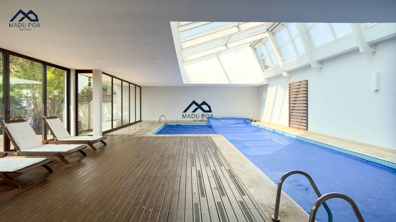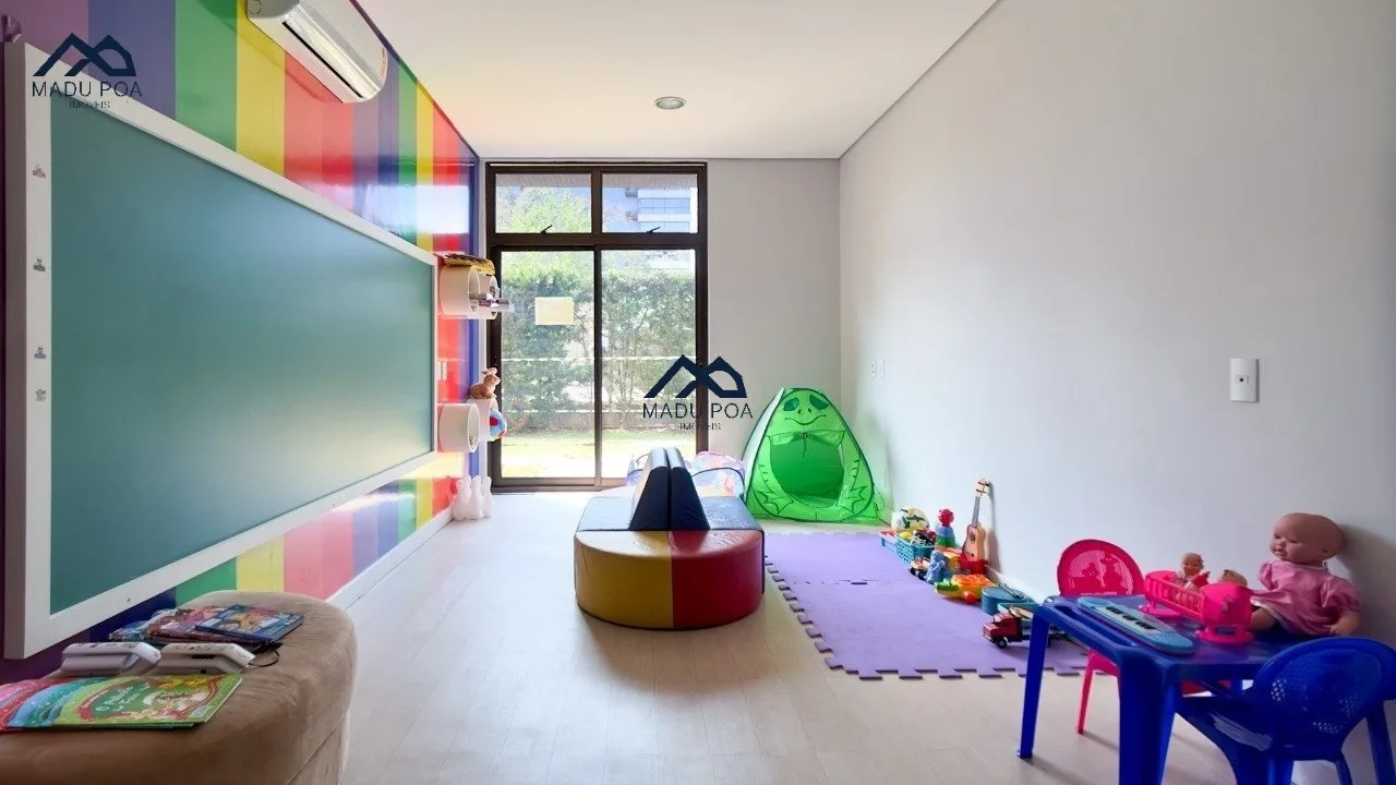Condomínio com portaria 24h, brinquedoteca, salão de festas, sala fitness, piscina coletiva, piscina aquecida, terraço coletivo com área gourmet e linda vista do Guaíba.