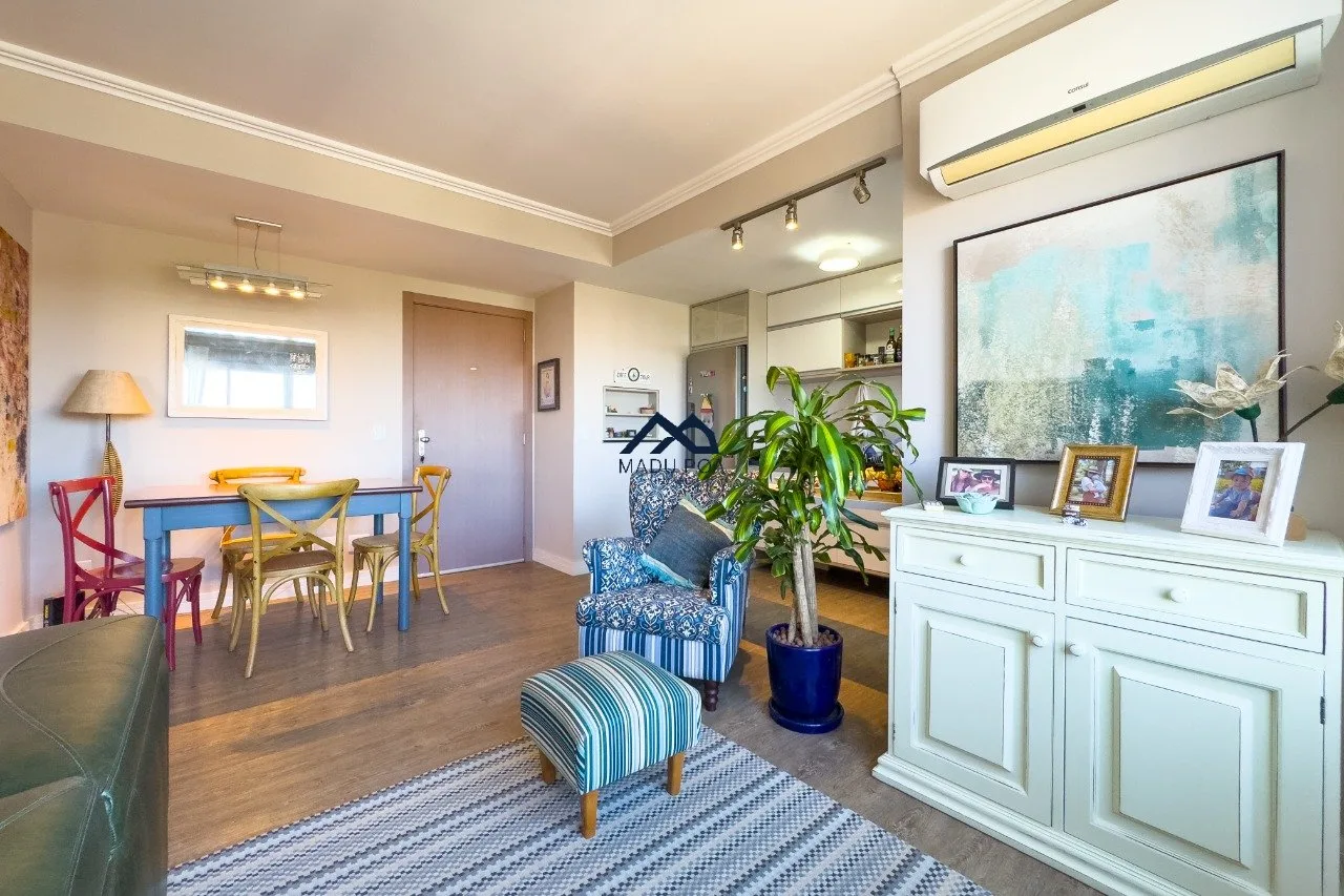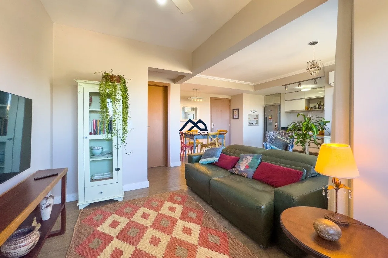 Living para dois ambientes, cozinha americana montada com churrasqueira, área de serviço, dois dormitórios ( transformado em 01 suíte,) privilegiando um amplo living estendido ( fácil reversão), banheiro social, e uma 01vaga escriturada.