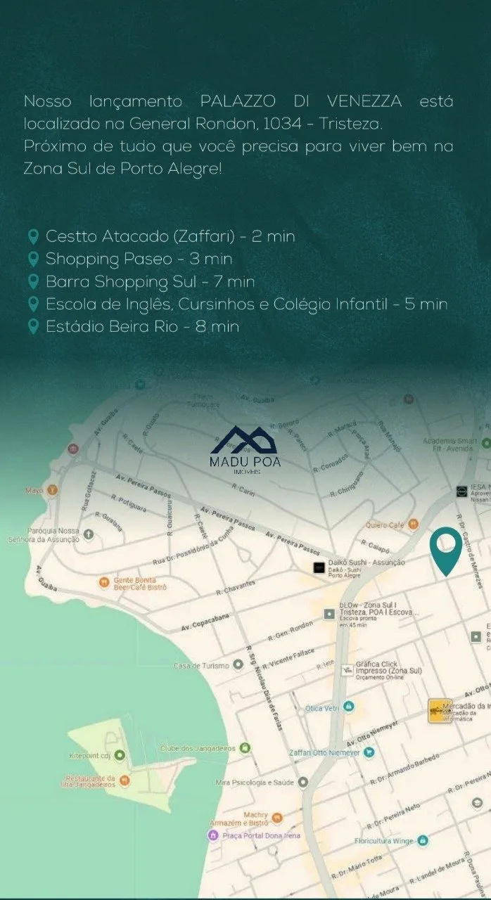 Prédio pequeno em construção no Bairro Tristeza com excelente localização, póximo ao Cesto e ao Shopping Paseo. São 06 andares com 04 apartamentos por andar, sendo dois apartamentos gardens.