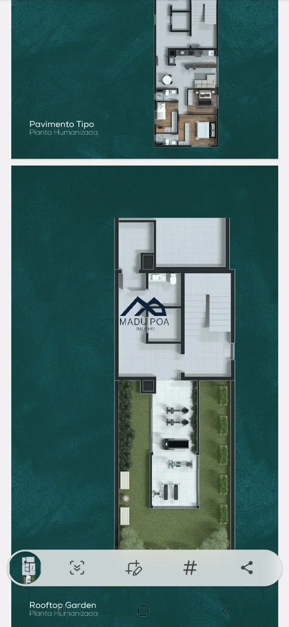 Apartamento garden: Com 98m², Três dormitórios com suíte, Churrasqueira e duas vagas.