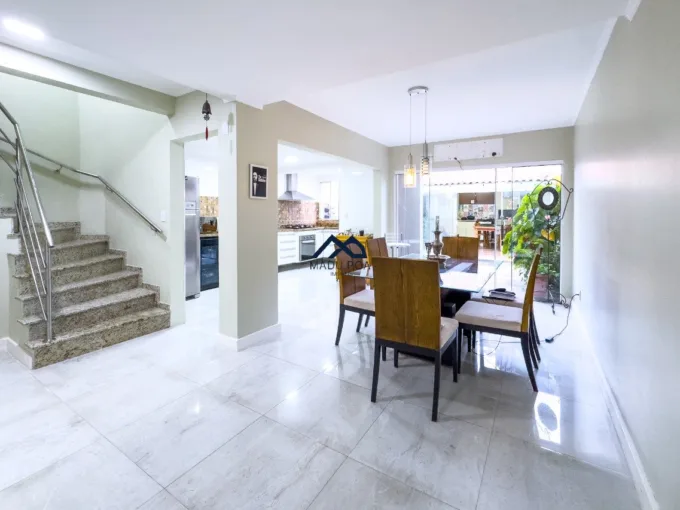 Amplo living integrado a sacada, churrasqueira, cozinha planejada e área de serviço com aquecedor a gás.