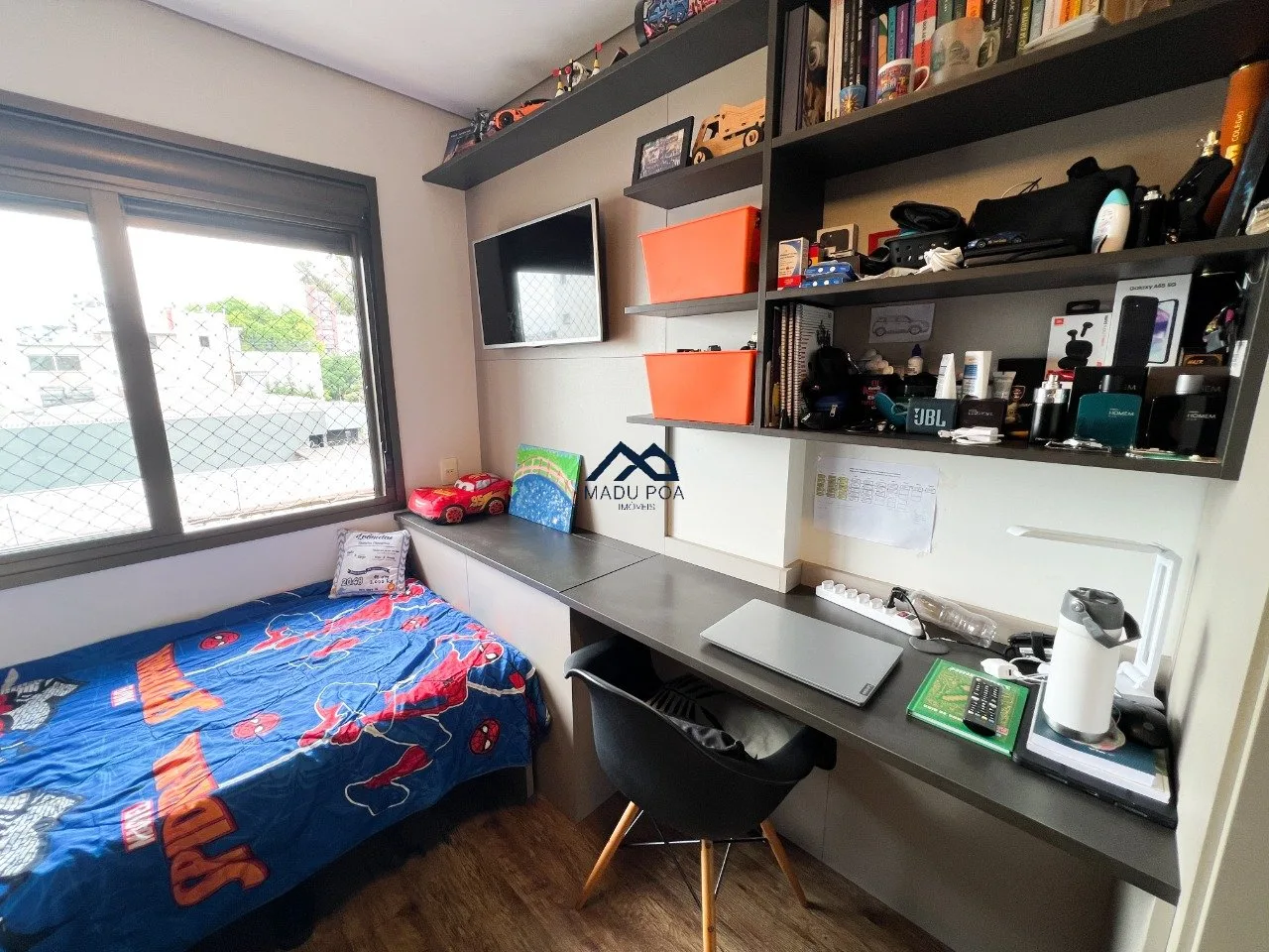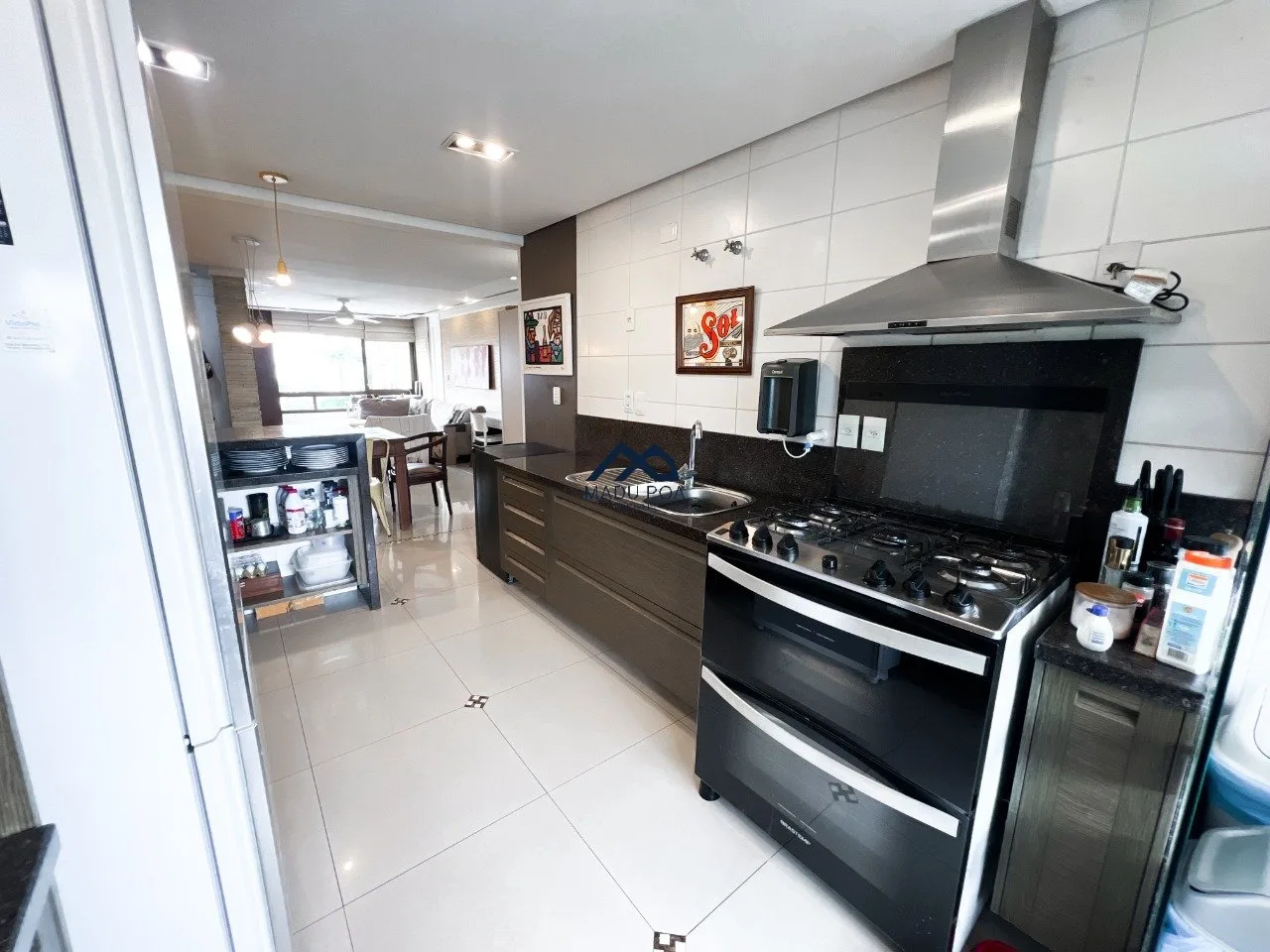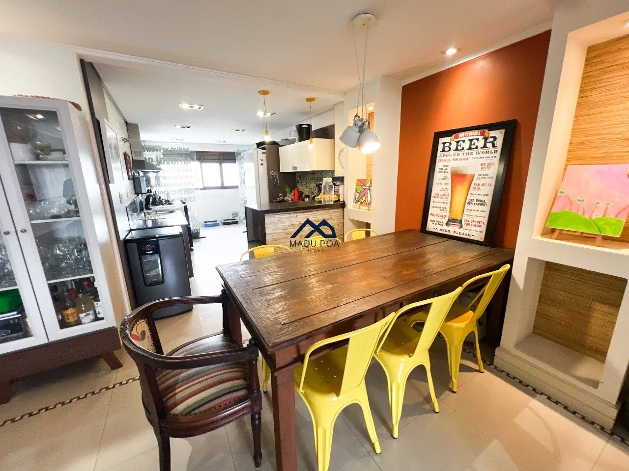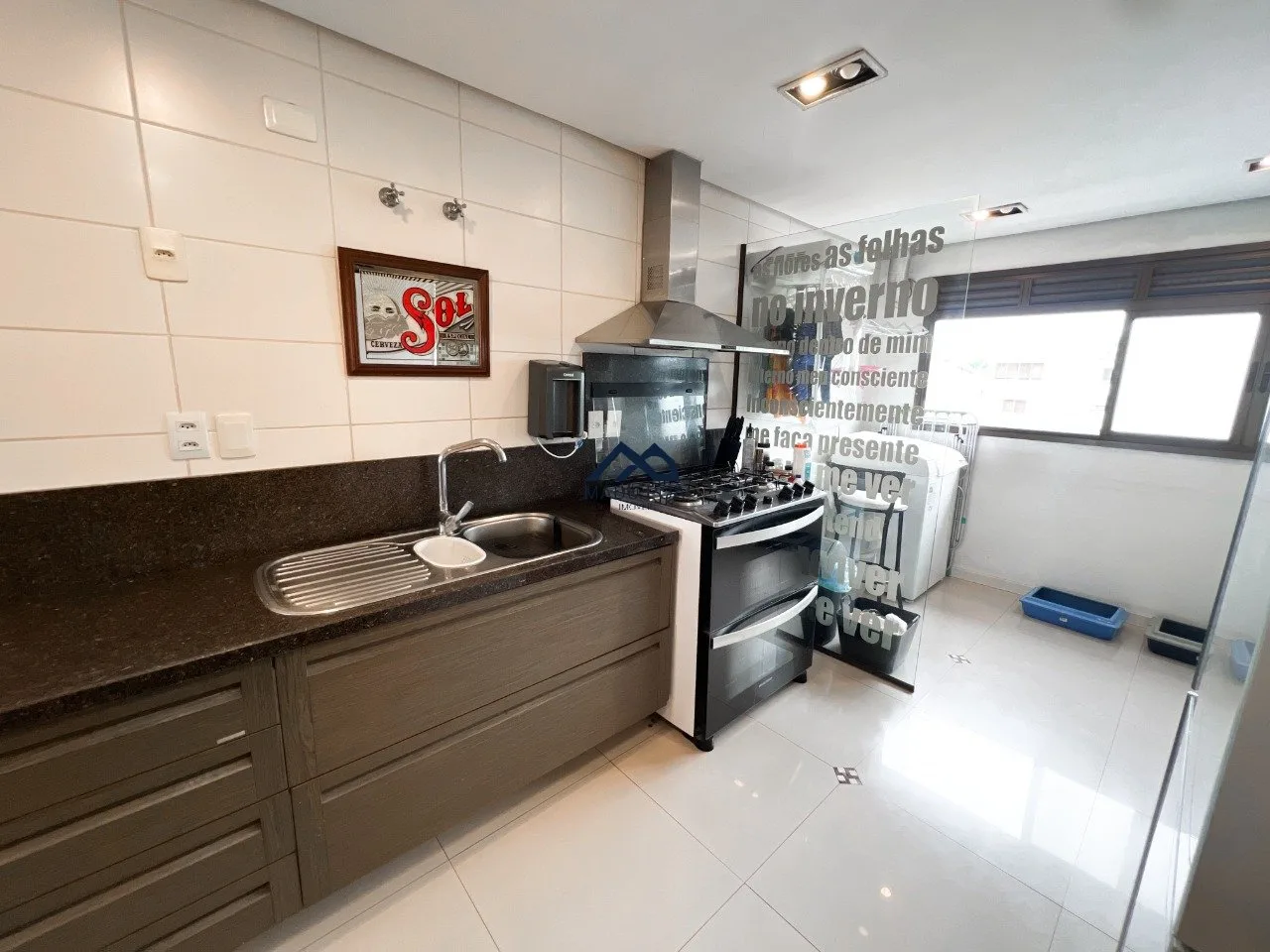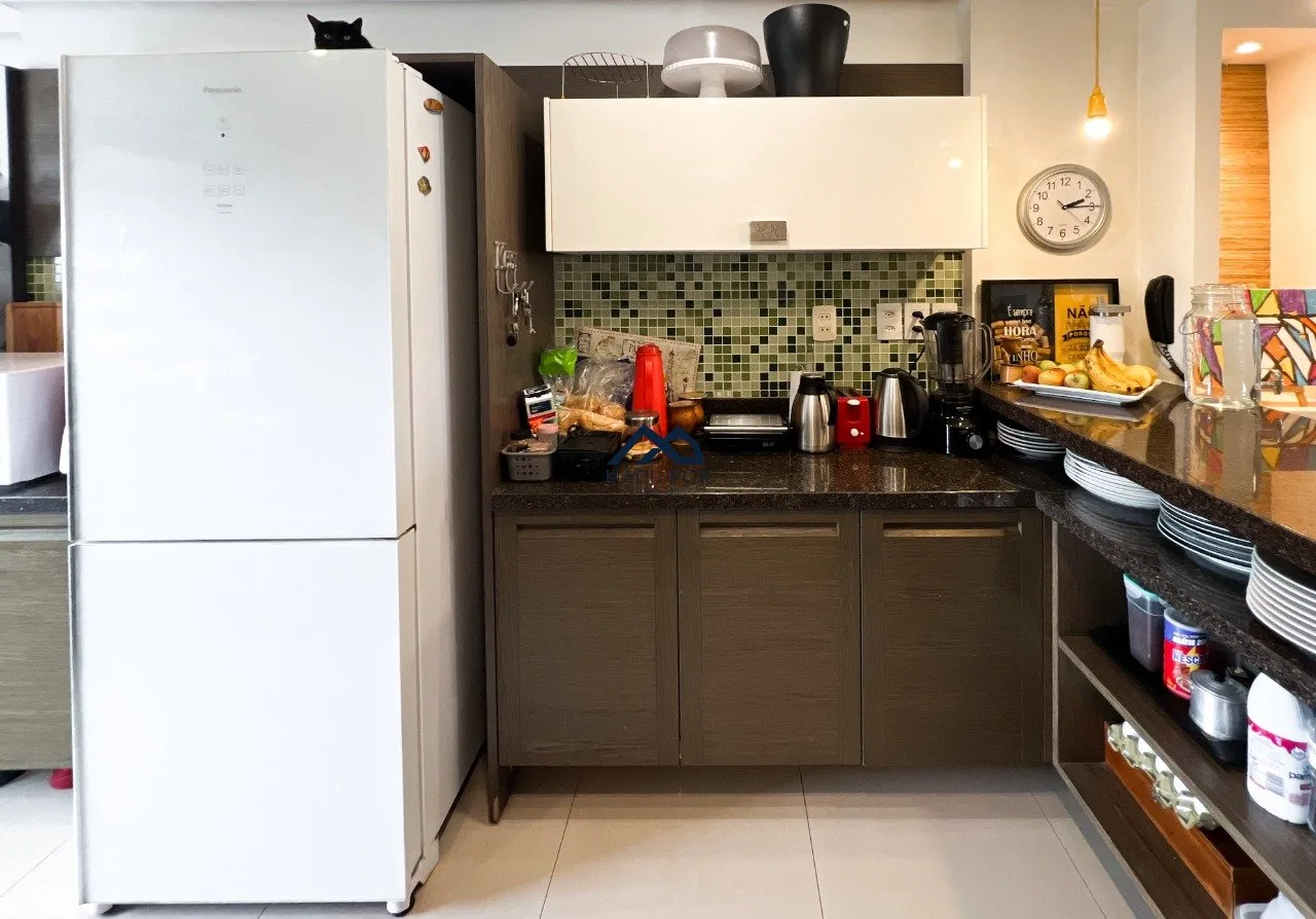 Living para dois ambientes, cozinha integrada com churrasqueira, lavabo, área de serviço espaçosa. São três dormitórios, sendo uma suíte, todos os banheiros com ventilação natural. Três vagas de garagem independentes.