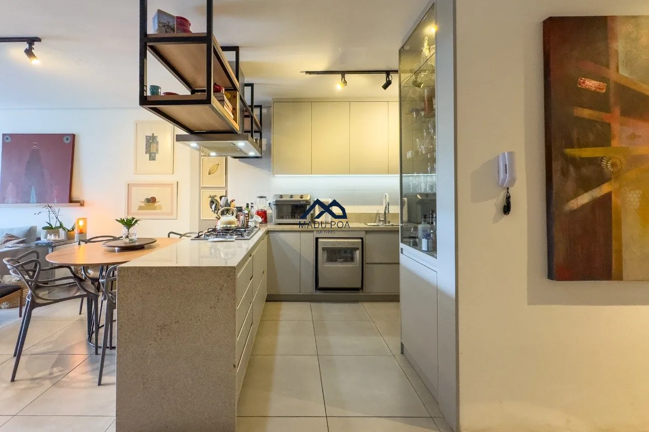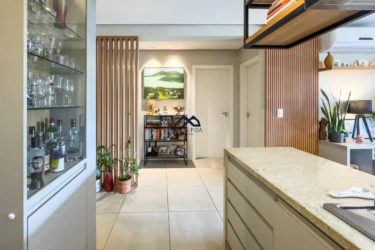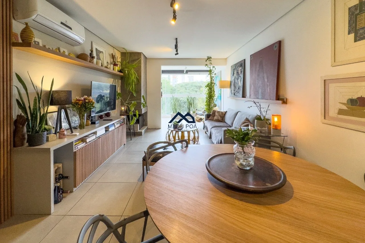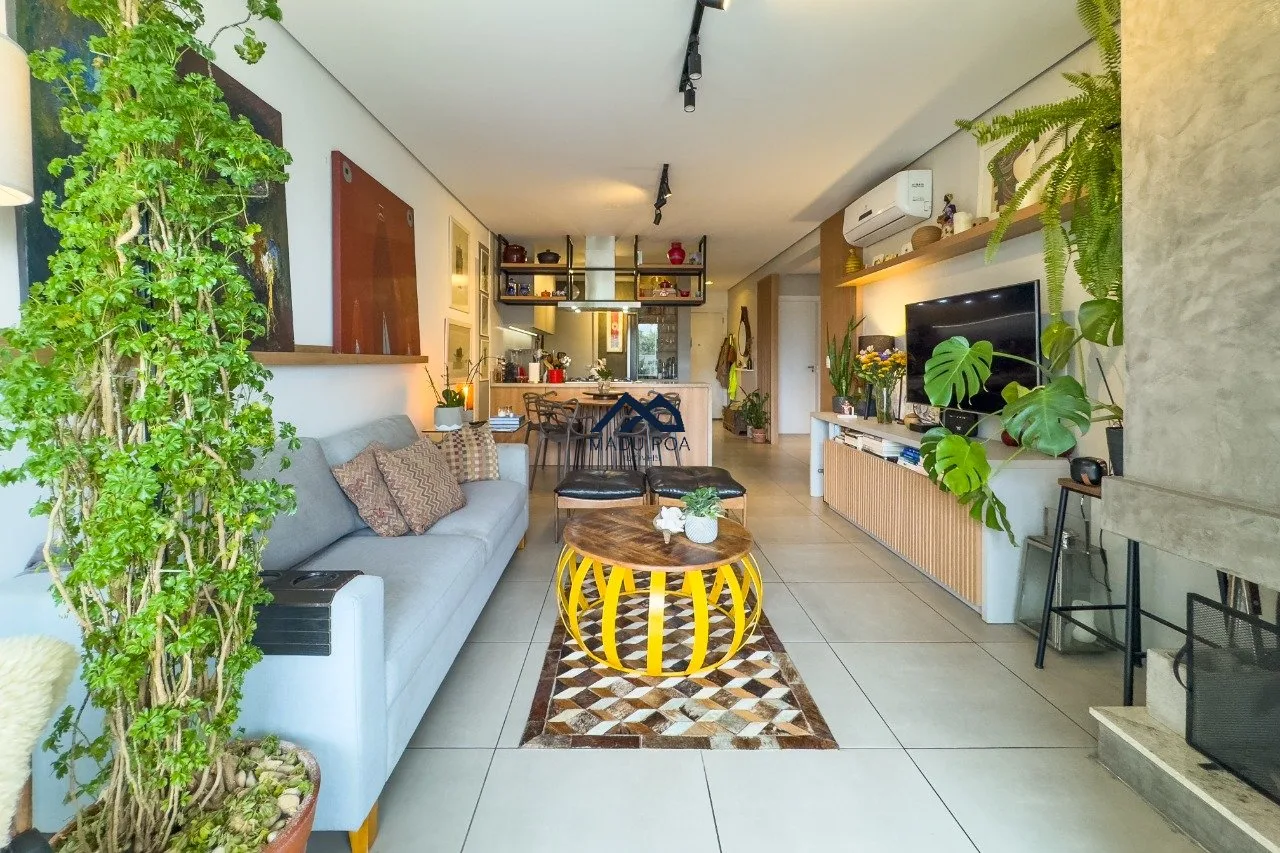 Living para dois ambientes com lareira, sacada com churrasqueira. cozinha conceito aberto com ilha gourmet, móveis sob medida, lavanderia com sol da manhã. São três dormitórios sendo uma suíte e um banheiro social. Duas vagas de garagem. Sol leste norte.