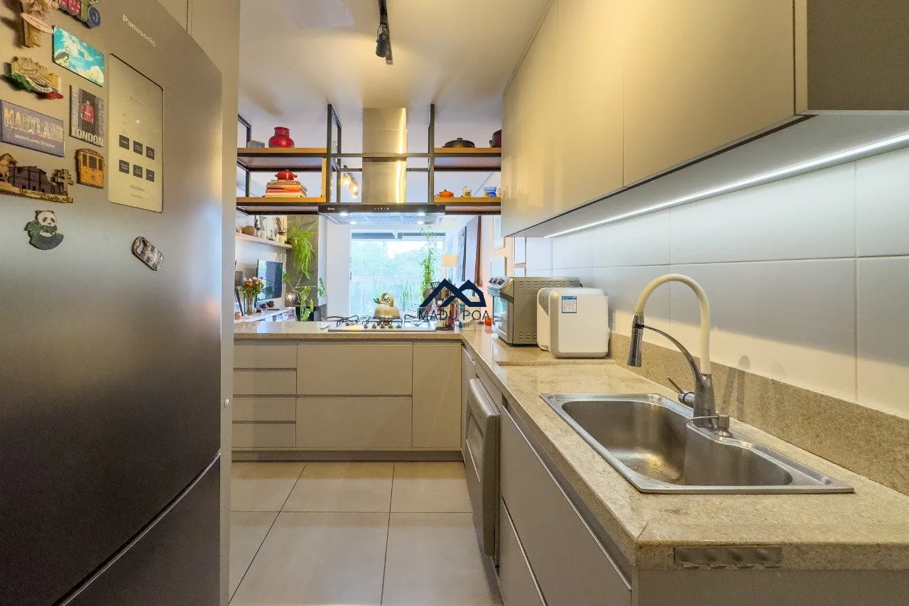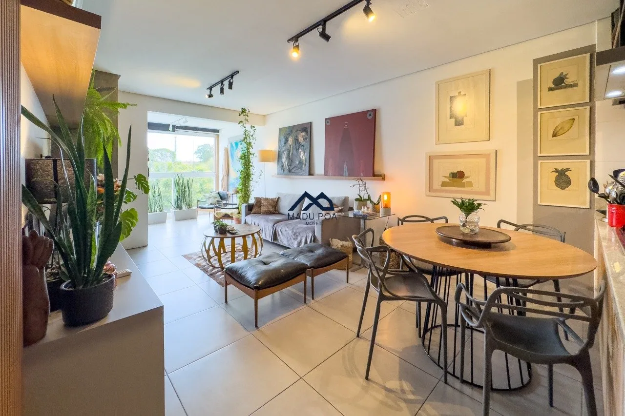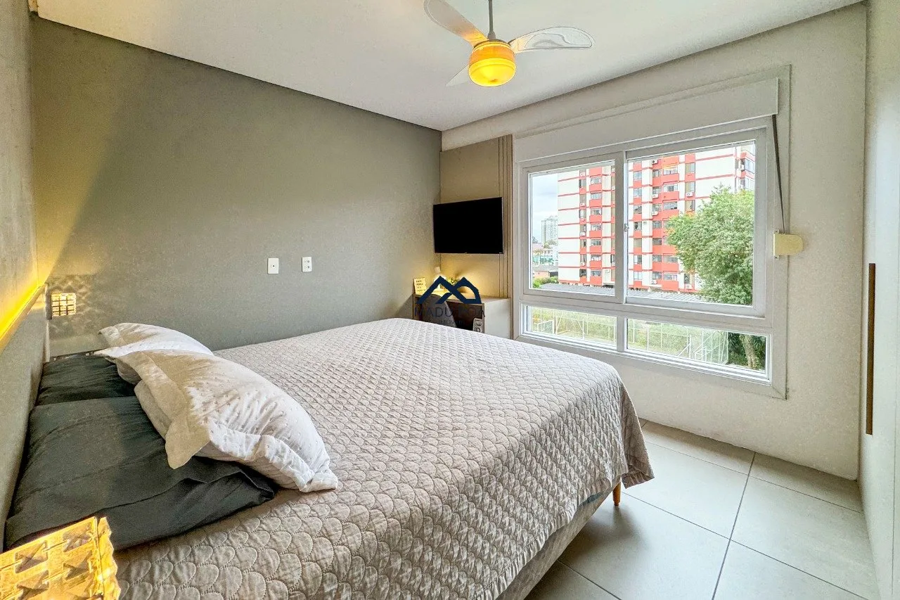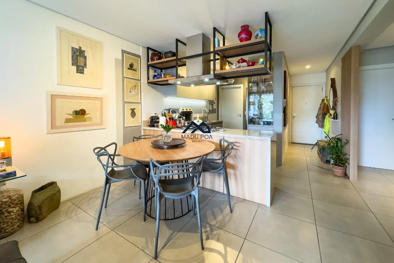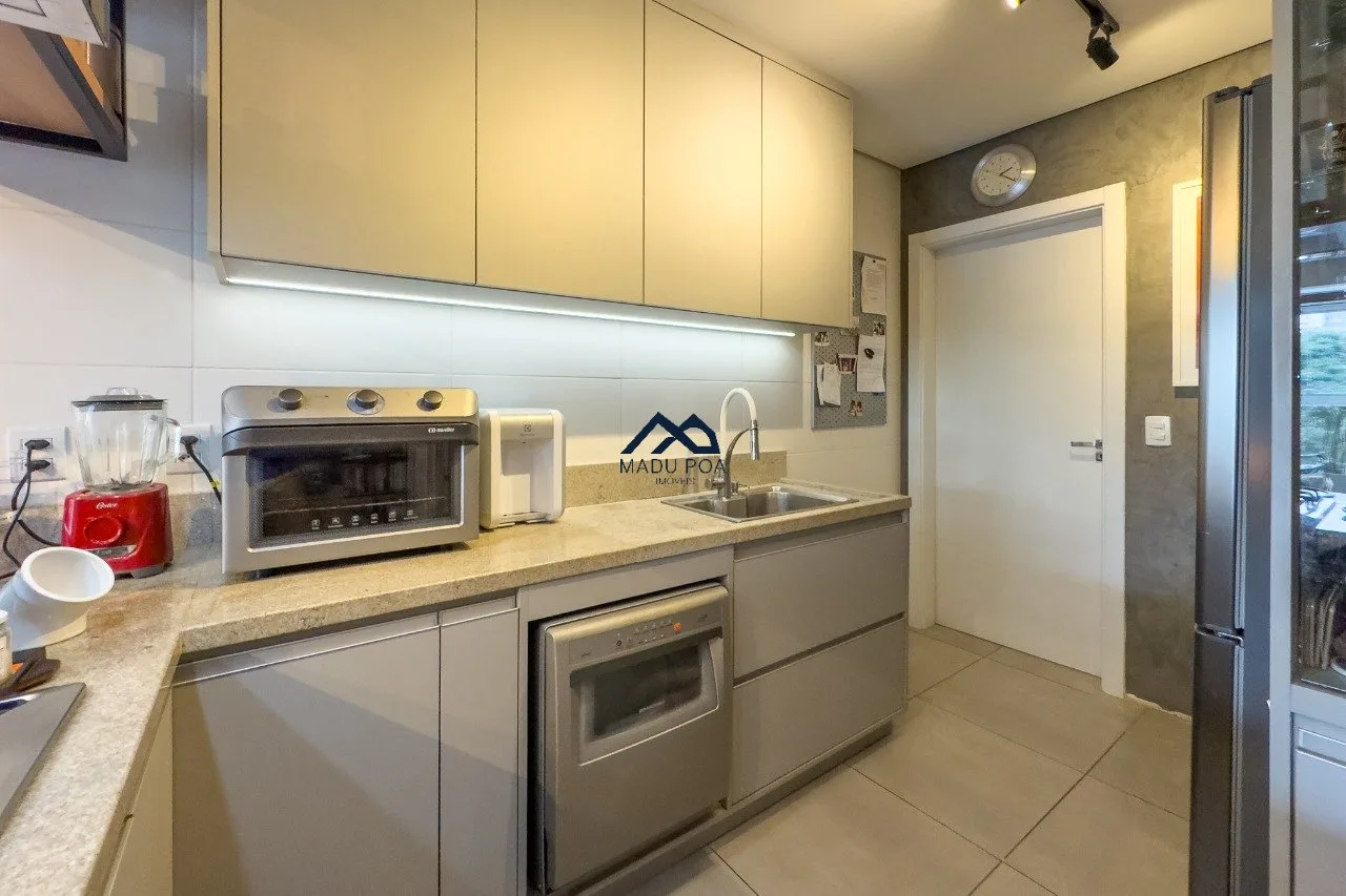 Living para dois ambientes com lareira, sacada com churrasqueira. cozinha conceito aberto com ilha gourmet, móveis sob medida, lavanderia com sol da manhã. São três dormitórios sendo uma suíte e um banheiro social. Duas vagas de garagem. Sol leste norte.