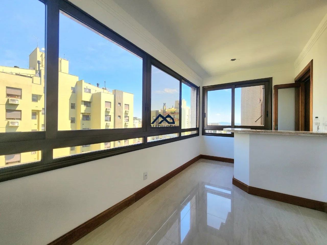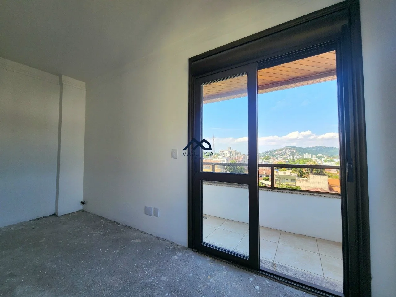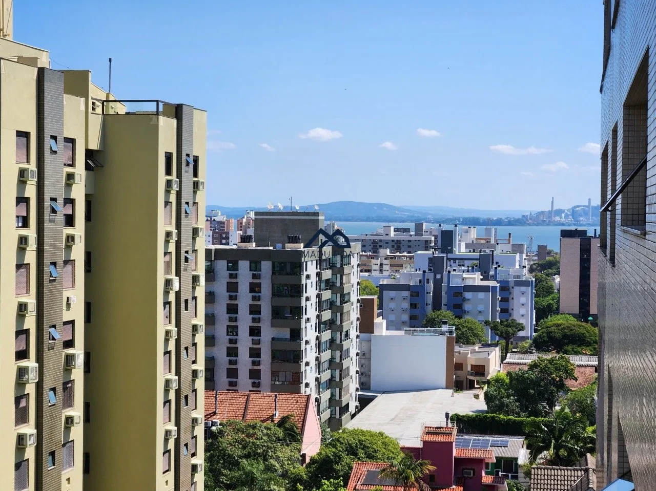 Vista da suíte para o morro e vista da sala para Guaíba.