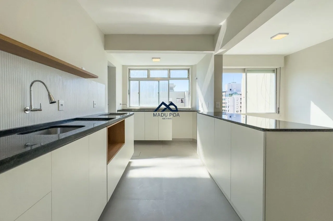Apartamento totalmente reformado com projeto de interiores impecável. Living para dois ambientes, cozinha americana com área de serviço integrada e móveis planejados, lavabo e banheiro social com armários, fechadura eletrônica para complementar a modernidade do imóvel. São três dormitórios, andar alto e sacada em um dos dormitórios com vista incrível, ótima orientação solar e ventilação cruzada. Uma vaga de garagem coberta.