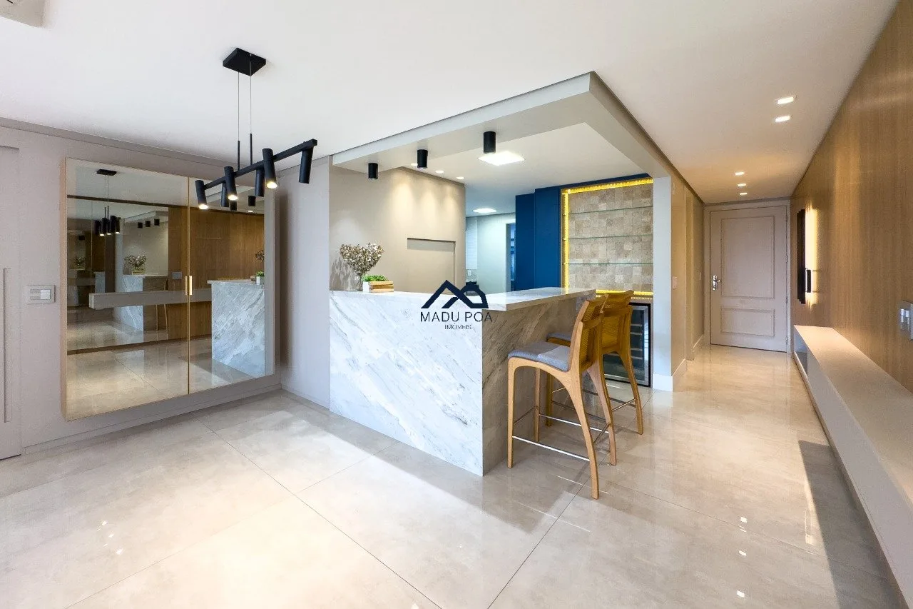 O imóvel conta com amplo living para dois ambientes, lavabo, lareira a álcool, cozinha americana com móveis sob medida e de alto padrão; churrasqueira, 3 dormitórios, sendo 1 suíte com closet e banheiro social.