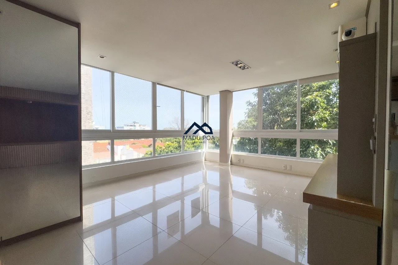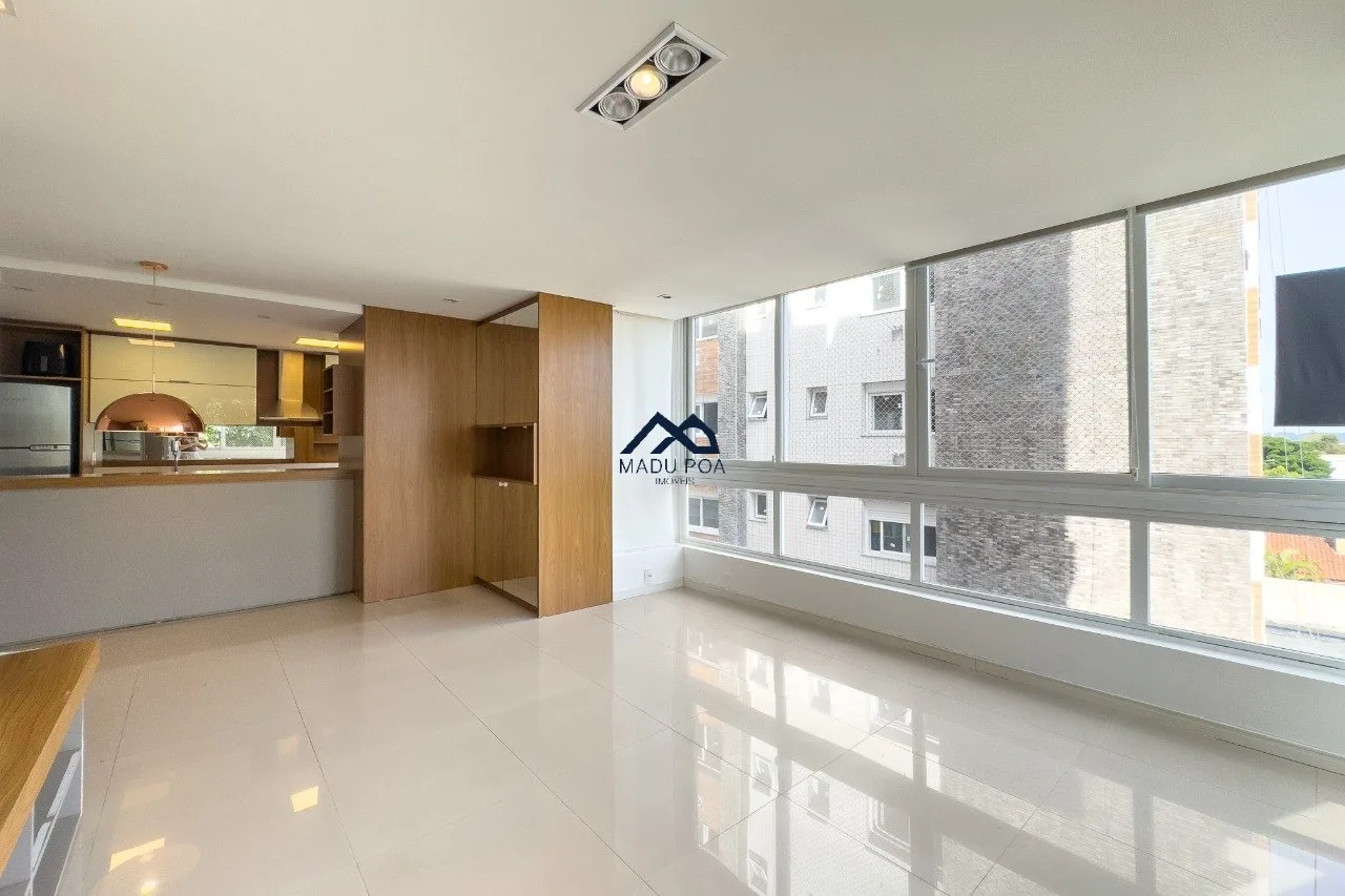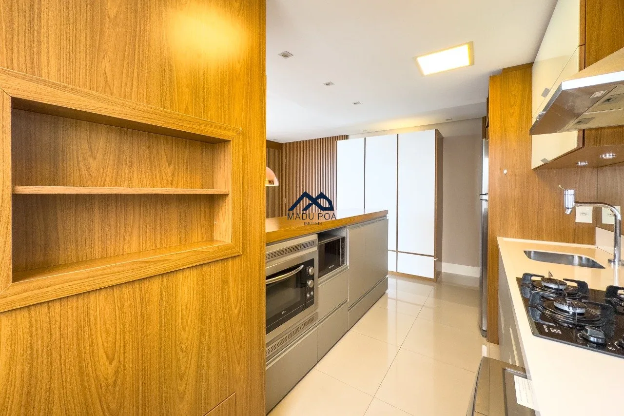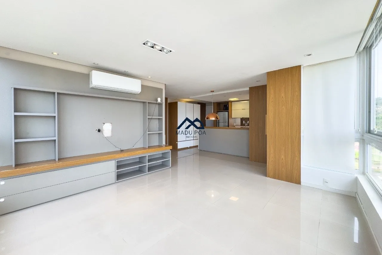 Living para dois ambientes com móveis sob medida, cozinha americana com moveis e alguns eletros. São três dormitórios sendo uma suíte.