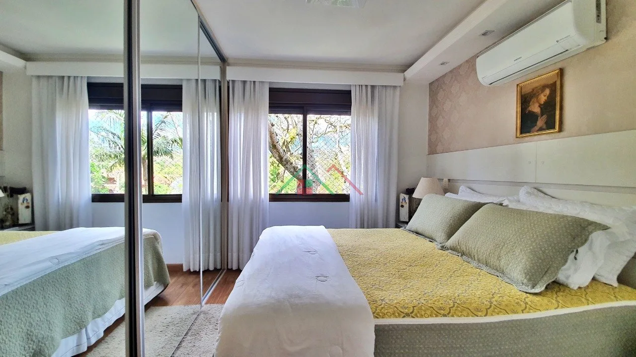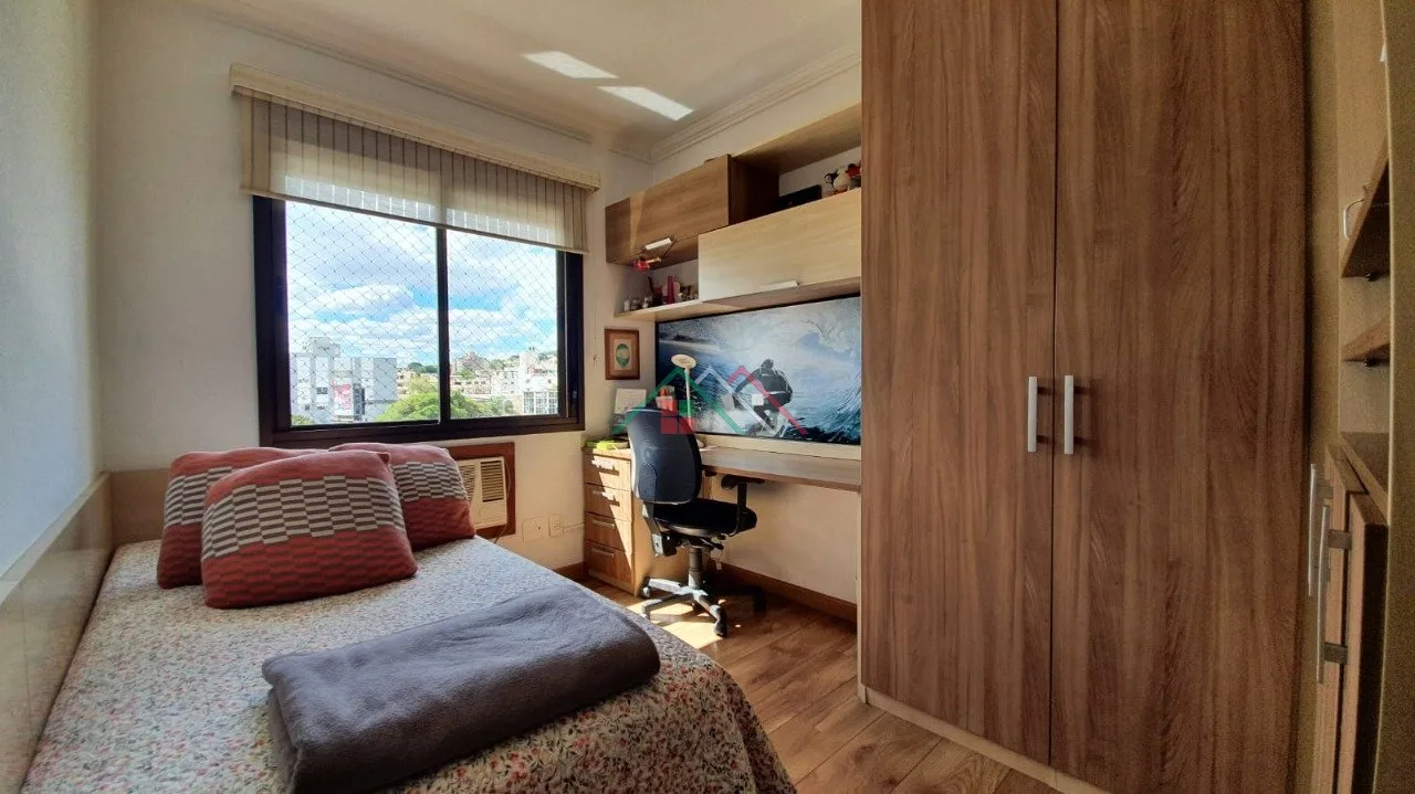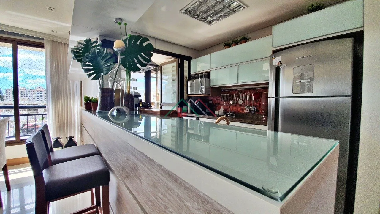 Possui living bem decorado para 03 ambientes com móveis fixos, lareira e churrasqueira, cozinha mobiliada, área de serviço separada, 03 dormitórios, sendo 01 suíte e banheiro social.