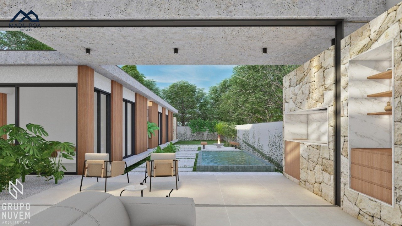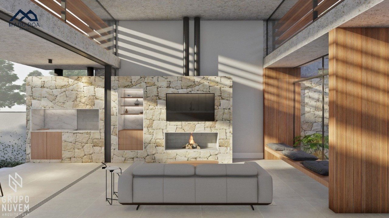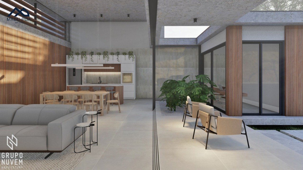 Living para três ambientes com 63m², lareira, jardim de inverno, gabinete em vidro, esquadrias com abertura amplas permitindo integração com todos os ambientes, cozinha com móveis sob medida, lavanderia. Três amplas suítes, sendo a máster com closet espera para hidro e parede com vidro integrando com a naturaze no em torno. Todas as aberturas das suítes voltadas para a piscina e piso aquecido em todos os banheiros. Espera fotovoltaico