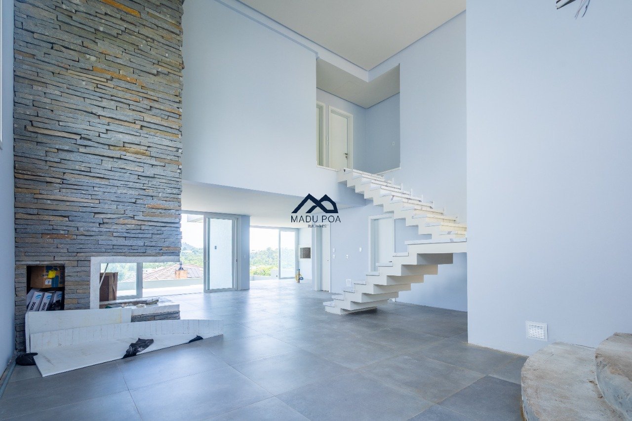 1° Pavimento: Hall de entrada, lavabo, living com pé direito duplo, lareira, sala de jantar, cozinha em conceito aberto, área de serviço, escritório, varanda e belo pátio.
