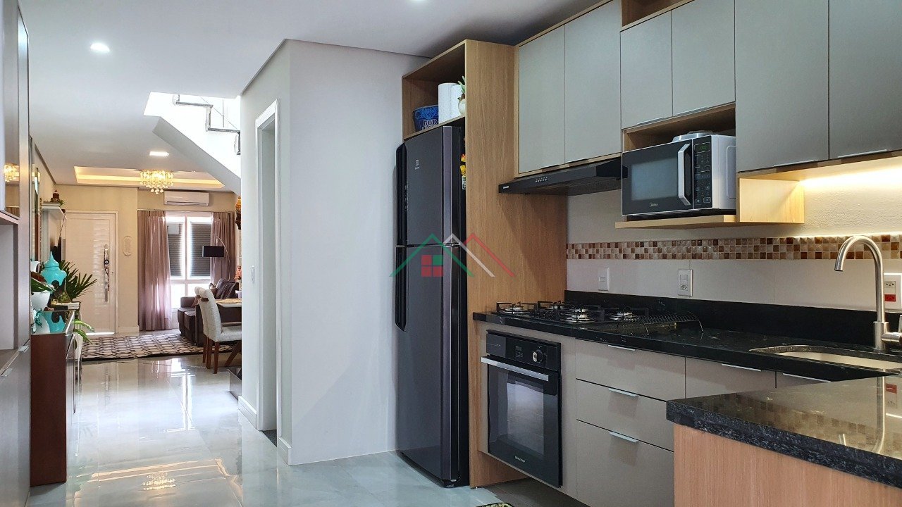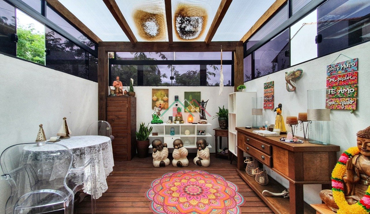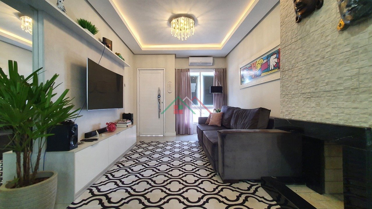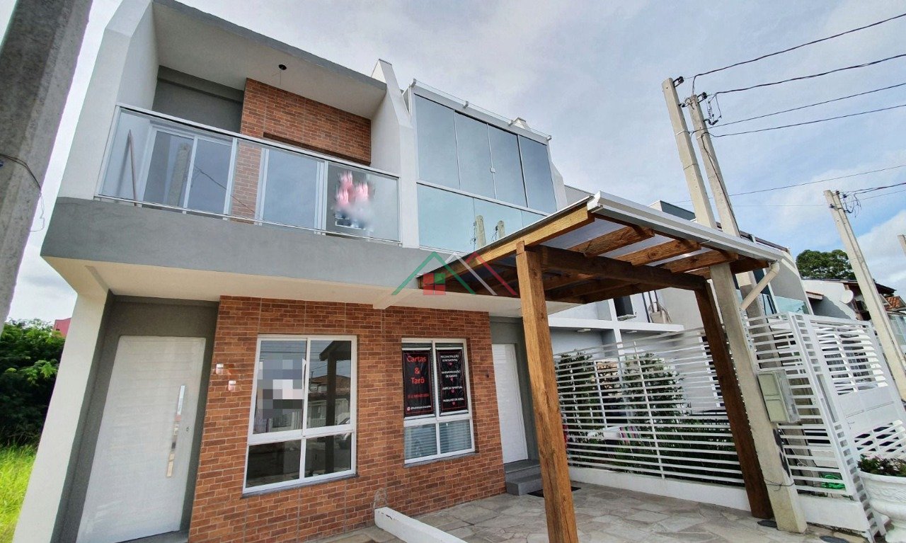 Sobrado mobiliado no bairro Hípica com 2 dormitórios, ambos com suíte e sacada, lavabo, living com lareira, cozinha, banheiro social. O pátio foi coberto e transformado em uma pequena sala com lavanderia.