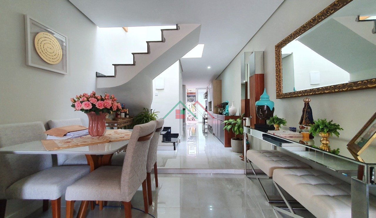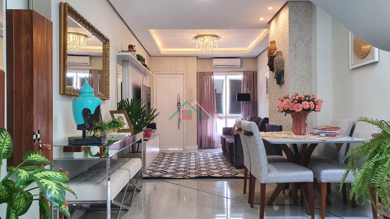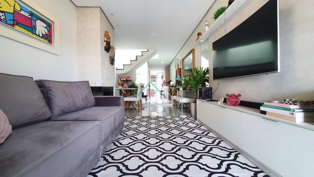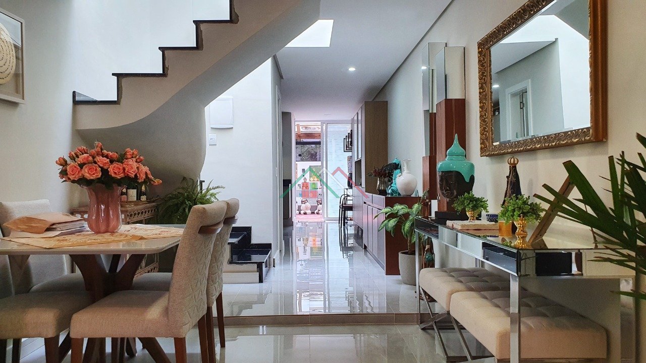 Sobrado mobiliado no bairro Hípica com 2 dormitórios, ambos com suíte e sacada, lavabo, living com lareira, cozinha, banheiro social. O pátio foi coberto e transformado em uma pequena sala com lavanderia.