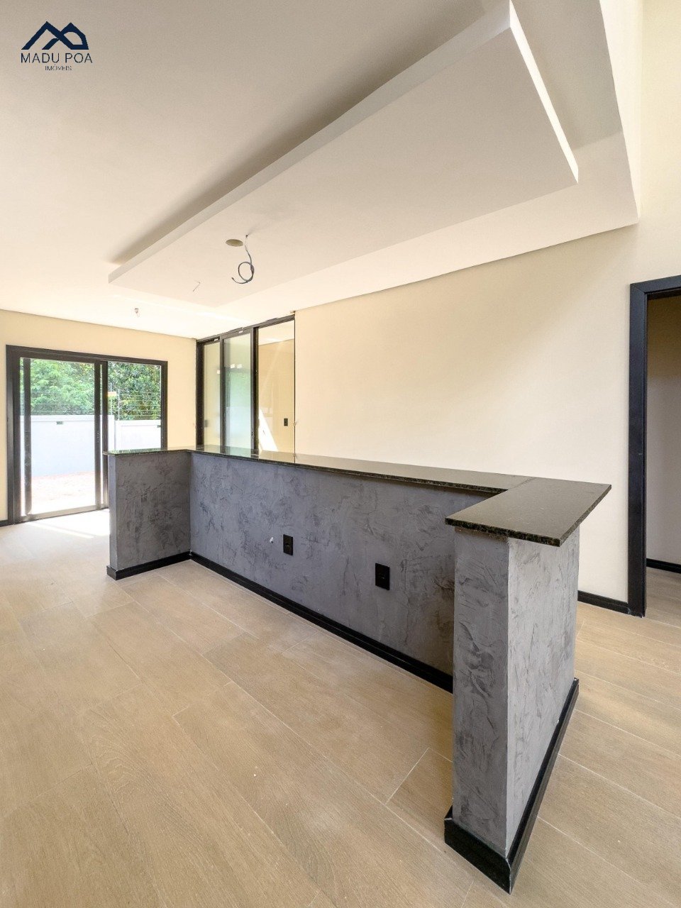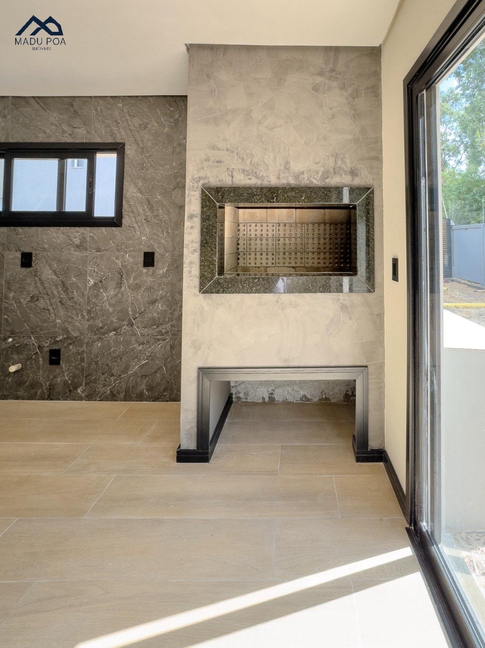 São 3 dormitórios, sendo 1 suíte, , amplo living para 2 ambientes, banheiro social, lavabo, cozinha integrada em formato ilha, lareira, churrasqueira e pátio.