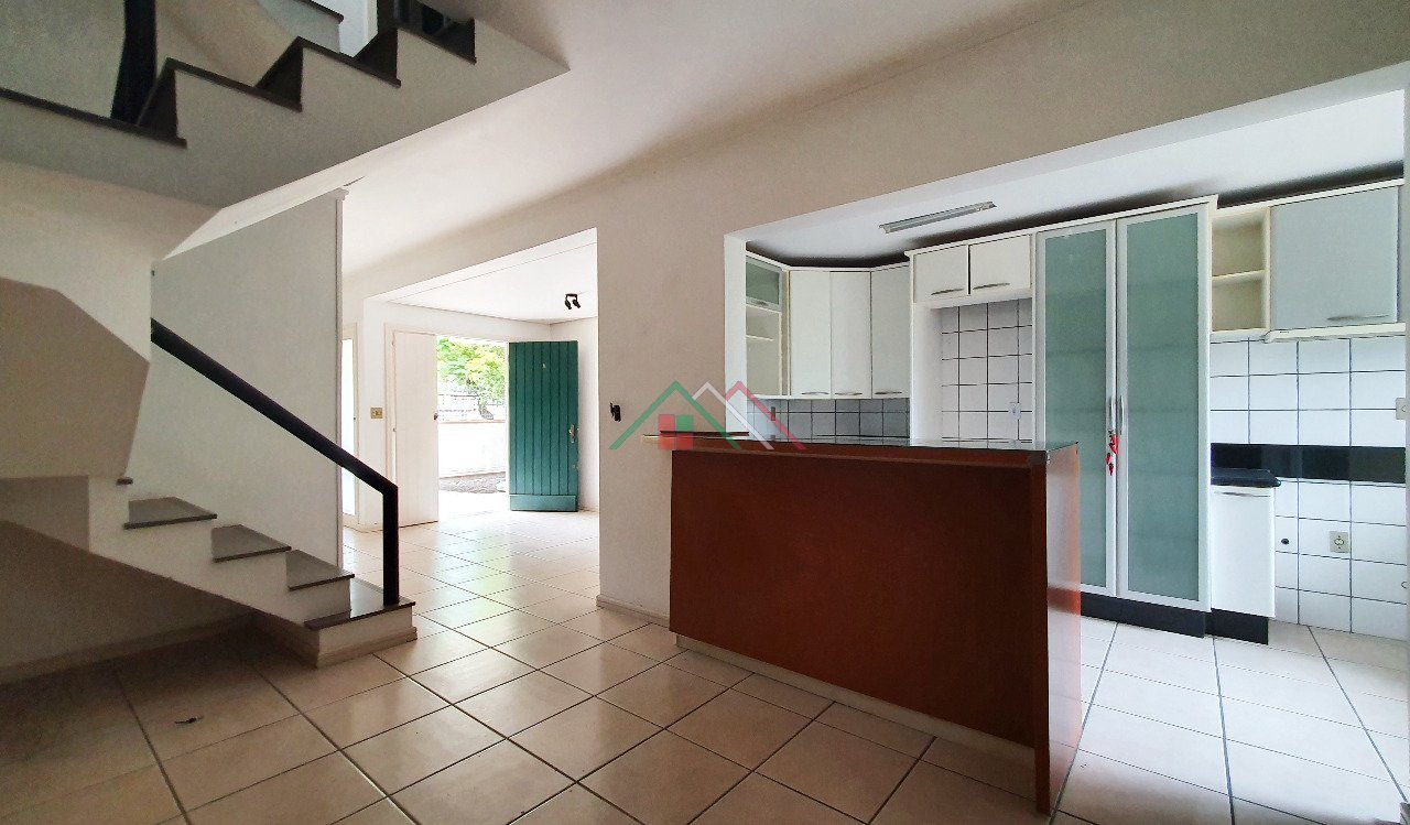 1º Pavimento: Living amplo, sala jantar, sala de estar com lareira, copa cozinha com móveis sob medida e balcão passa pratos, lavabo, área de serviço, dependência de empregada, pátio. Garagem para 4 carros sendo duas cobertas.