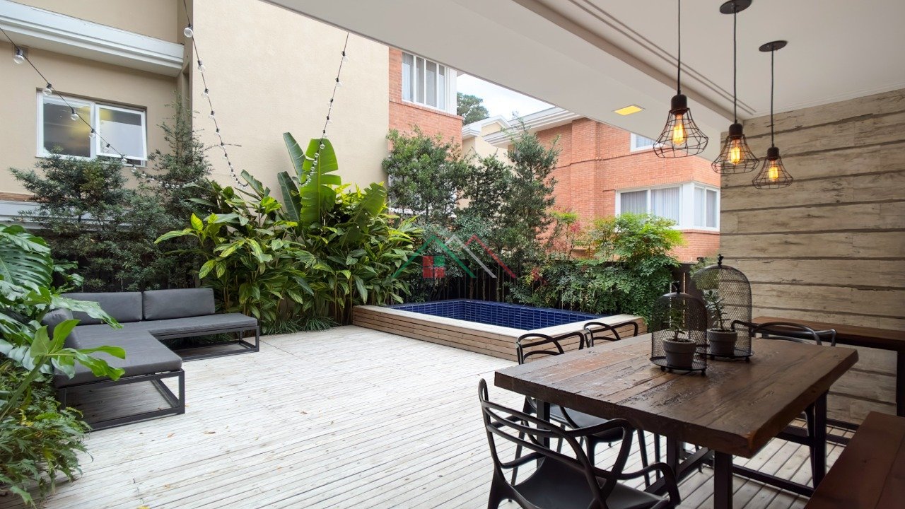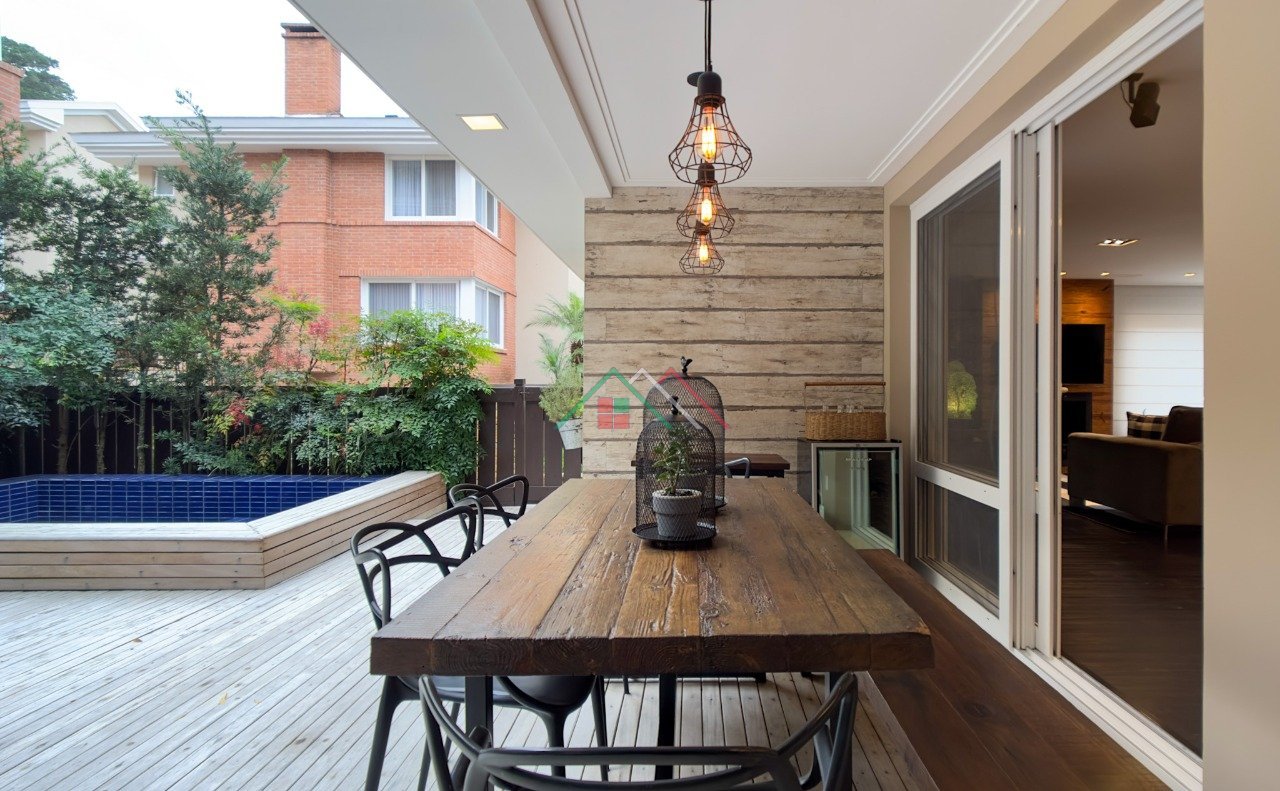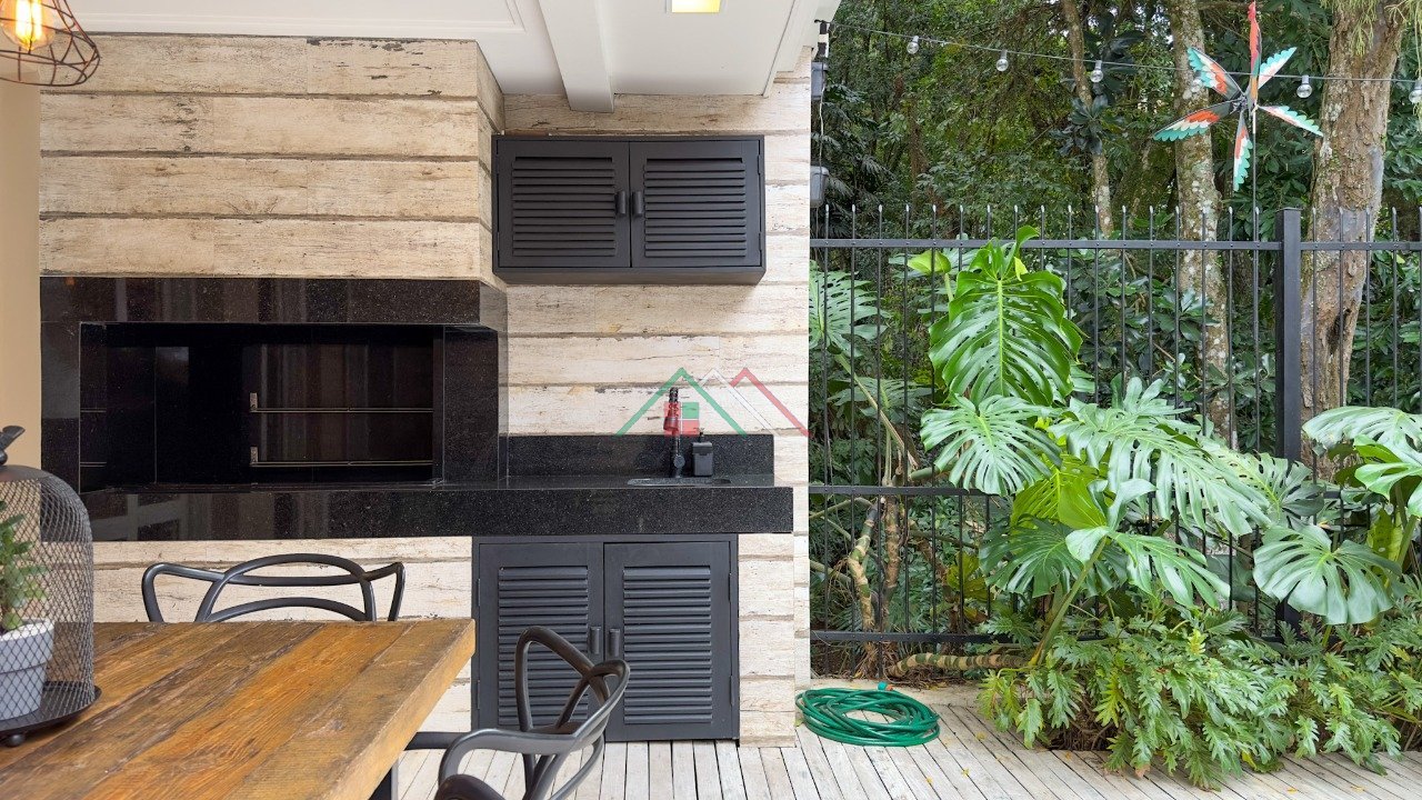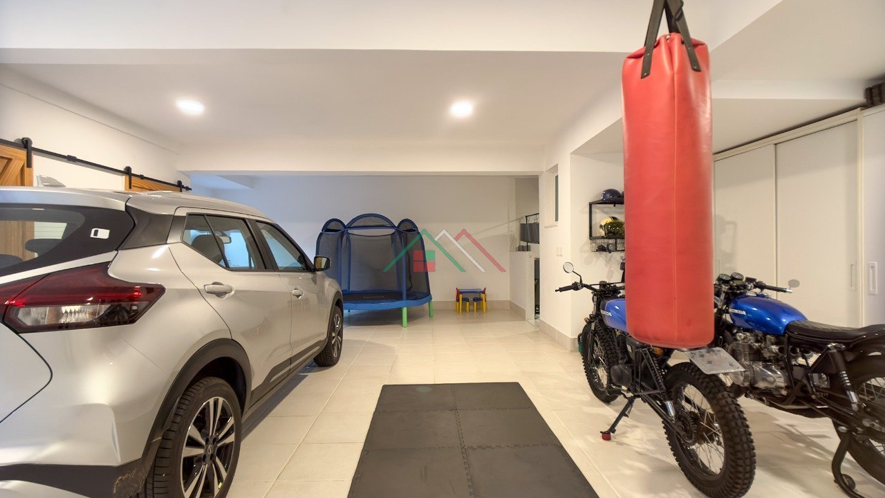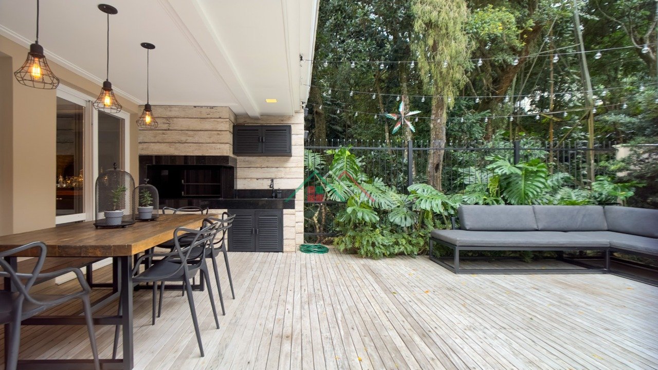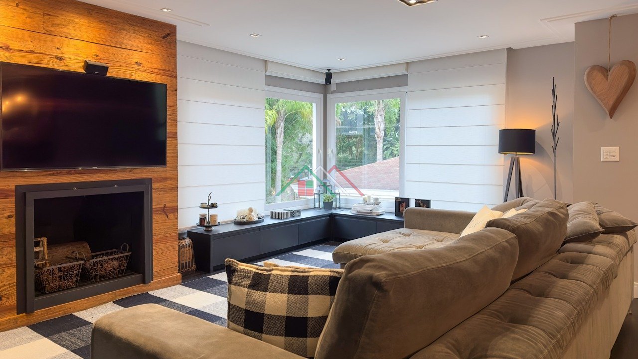 1ºPavimento: Amplo living com lavabo, sala de estar com lareira, sala de jantar integrada ao espaço gourmet e cozinha, pátio privativo com piscina e deck, e ainda garagem para 04 carros cobertos, lavanderia, e depósito.