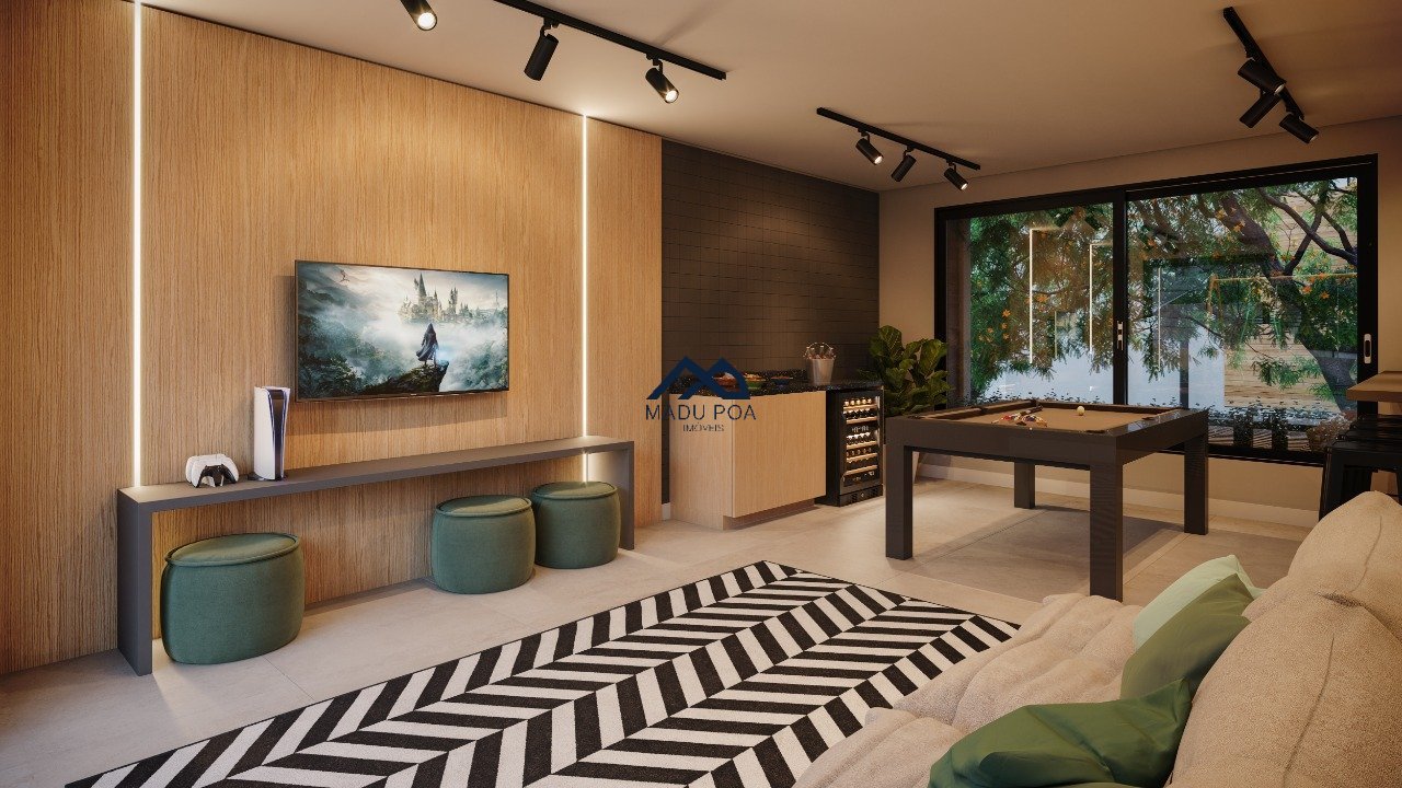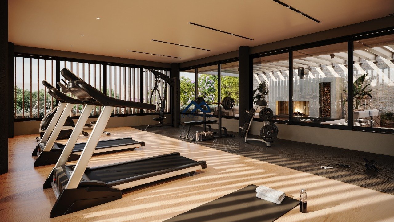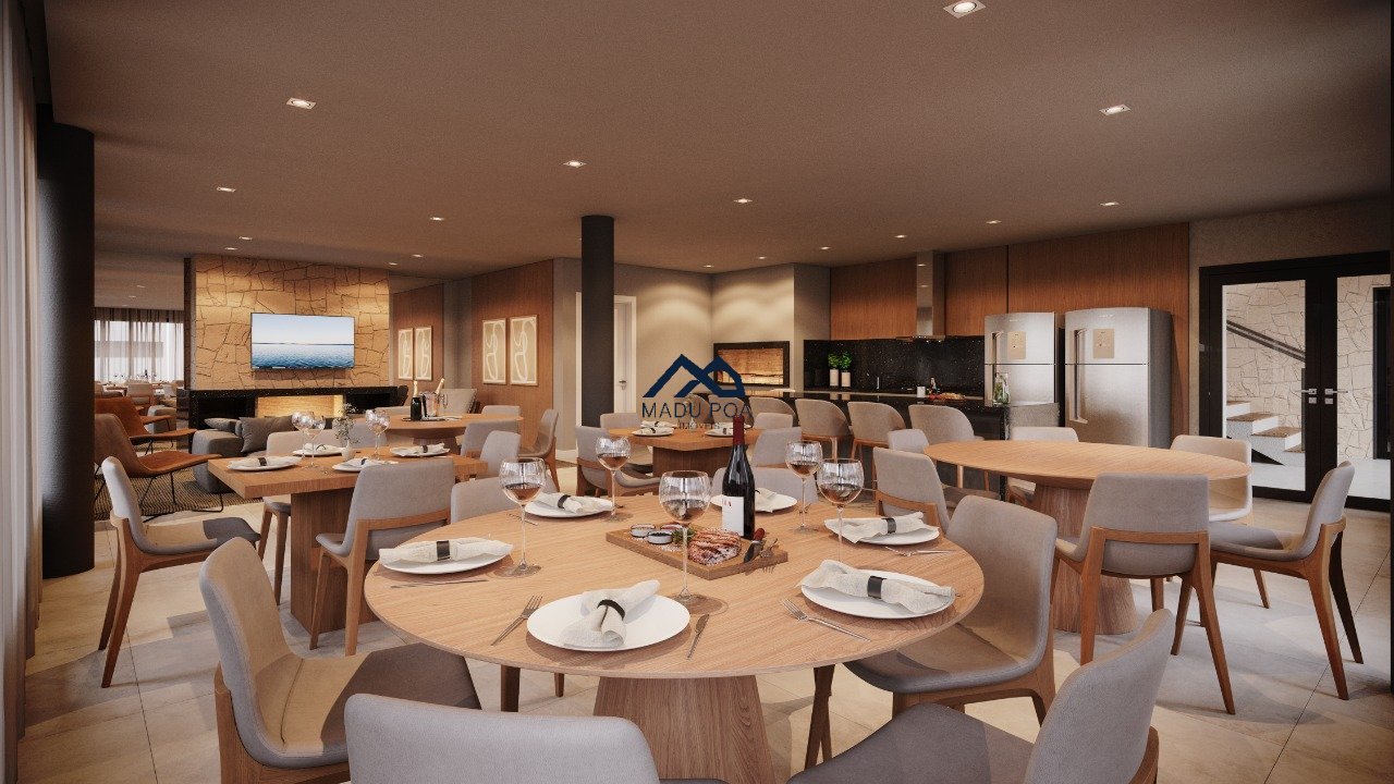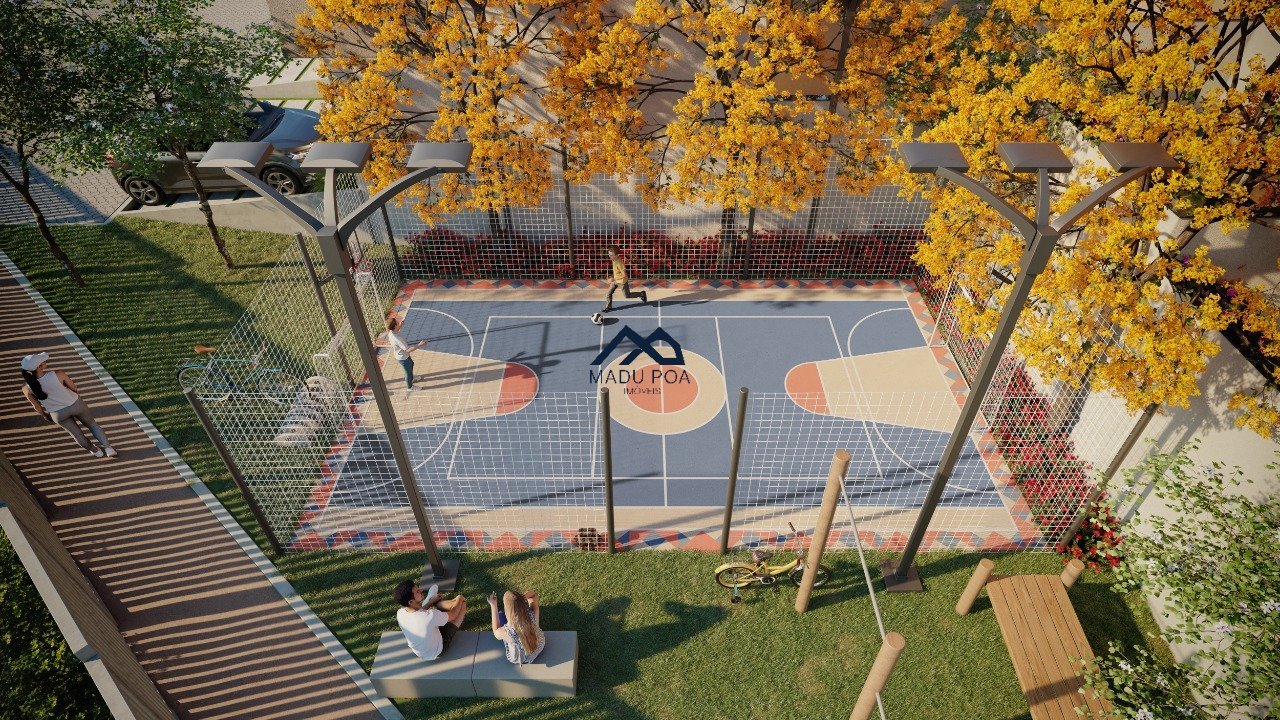 A infraestrutura do condomínio oferece: Salão de festas com churrasqueira, espaço para micromarket, academia, sala de jogos, brinquedoteca, lounge com lareira, piscina adulto e spa, piscina infantil, playground, espaço pet, redário, fogo de chão, mini quadra, estar externo com pergolado, quiosque gourmet, quadra de beach tennis, vestiário (de serviço) depósitos, bicicletário, espaço para zelador, 12 vagas de estacionamento para visitantes .