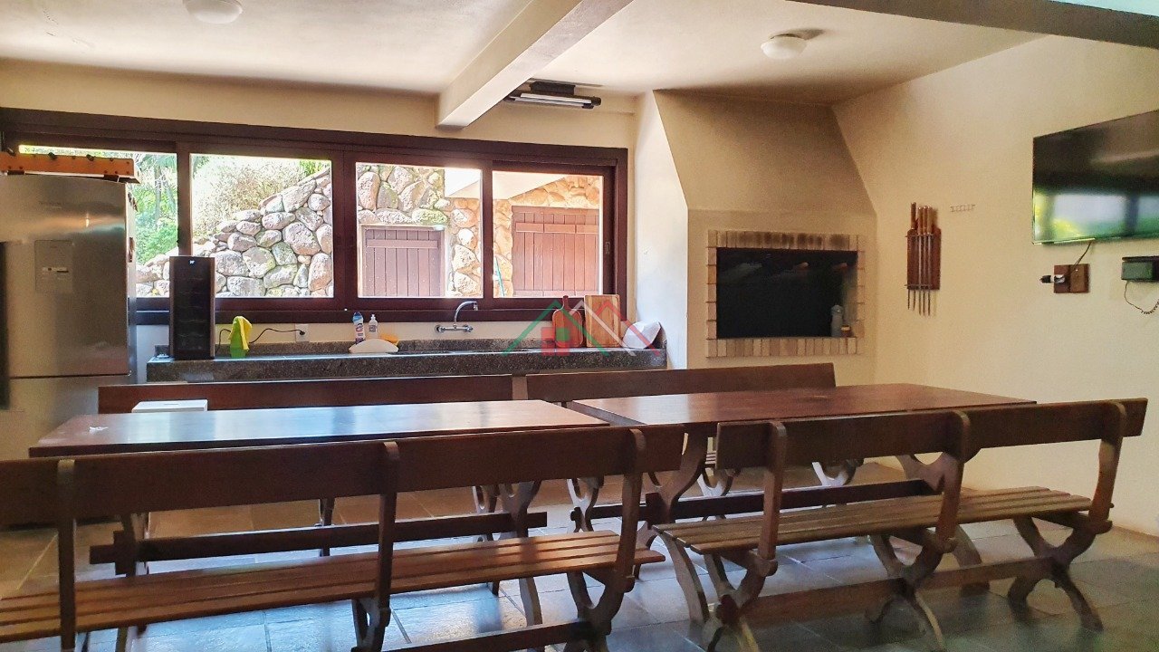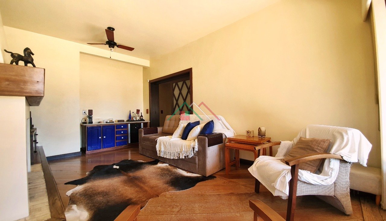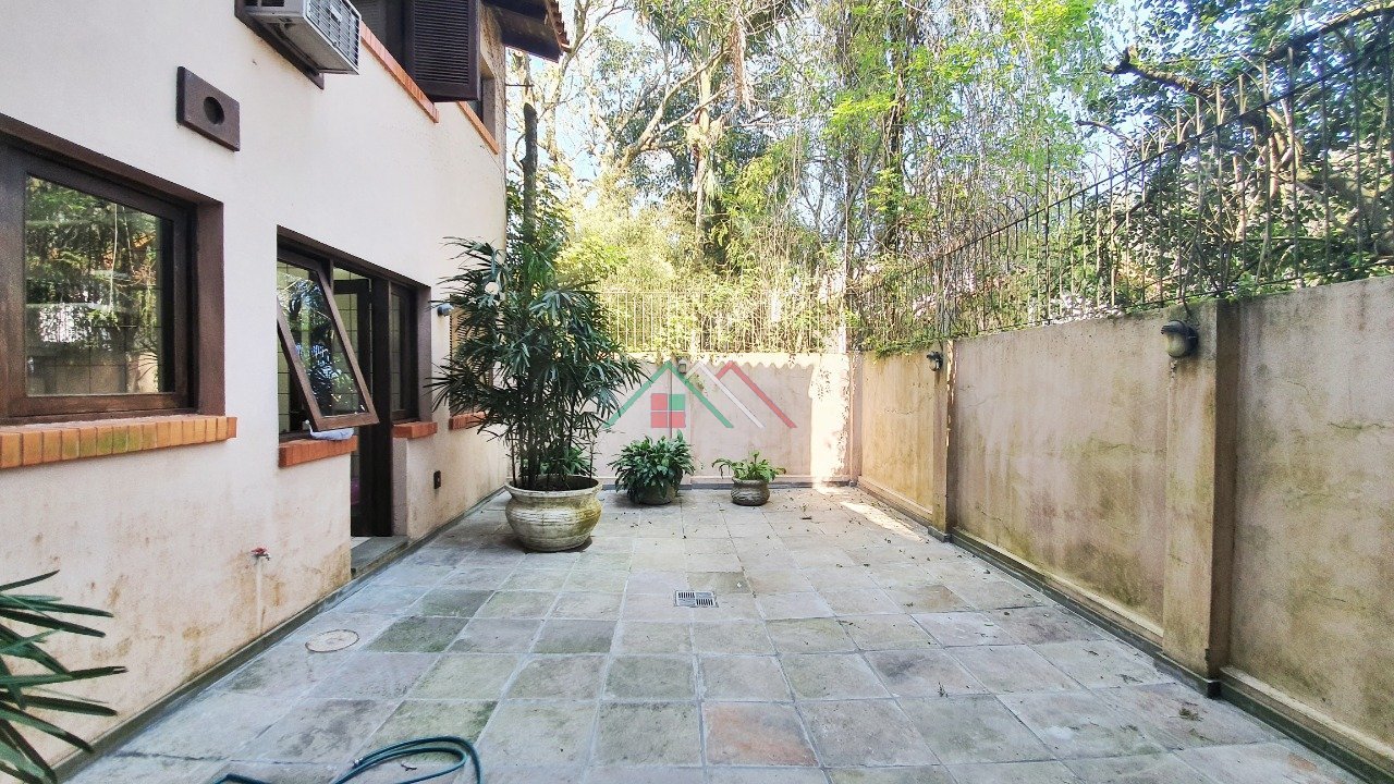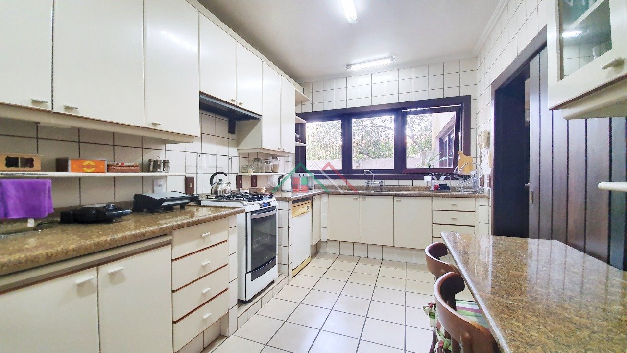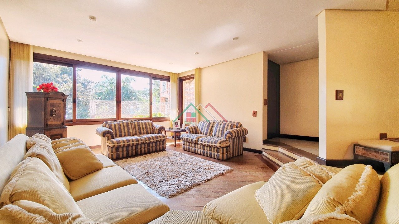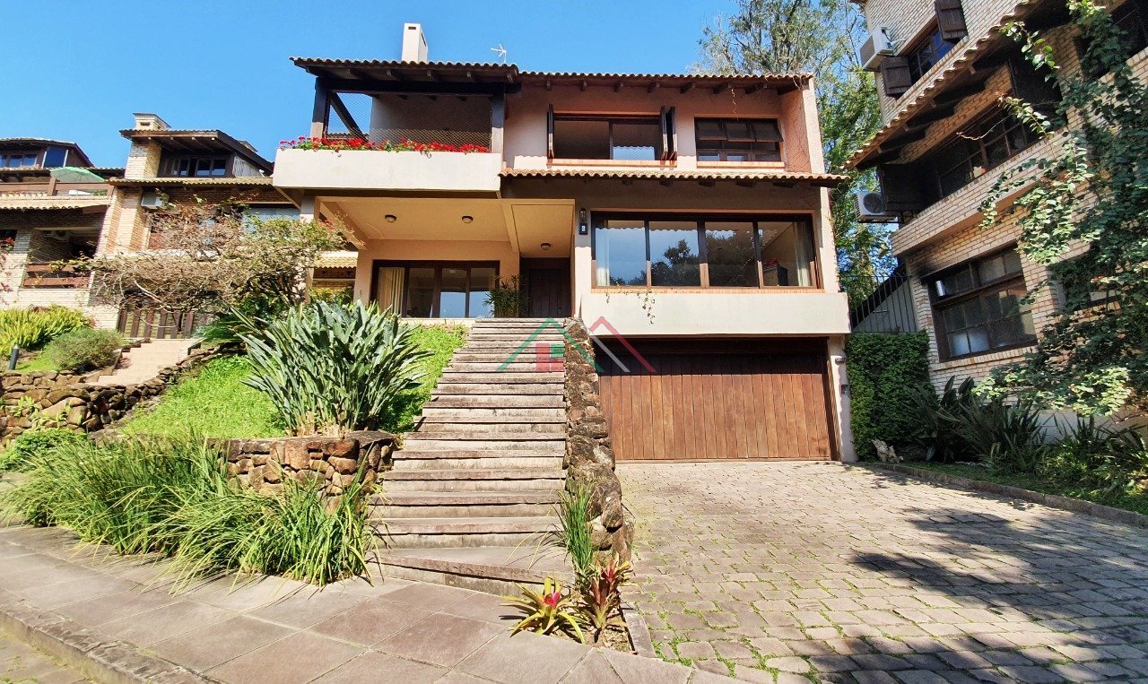 Primeiro piso: Sala de estar com lareira e 1 sala ampla com 3 ambientes, lavabo, copa/cozinha, área de serviço, dependência completa de empregada e pátio. No subsolo ampla garagem para 6 carros cobertos, espaço gourmet com churrasqueira, banheiro auxiliar, depósito.