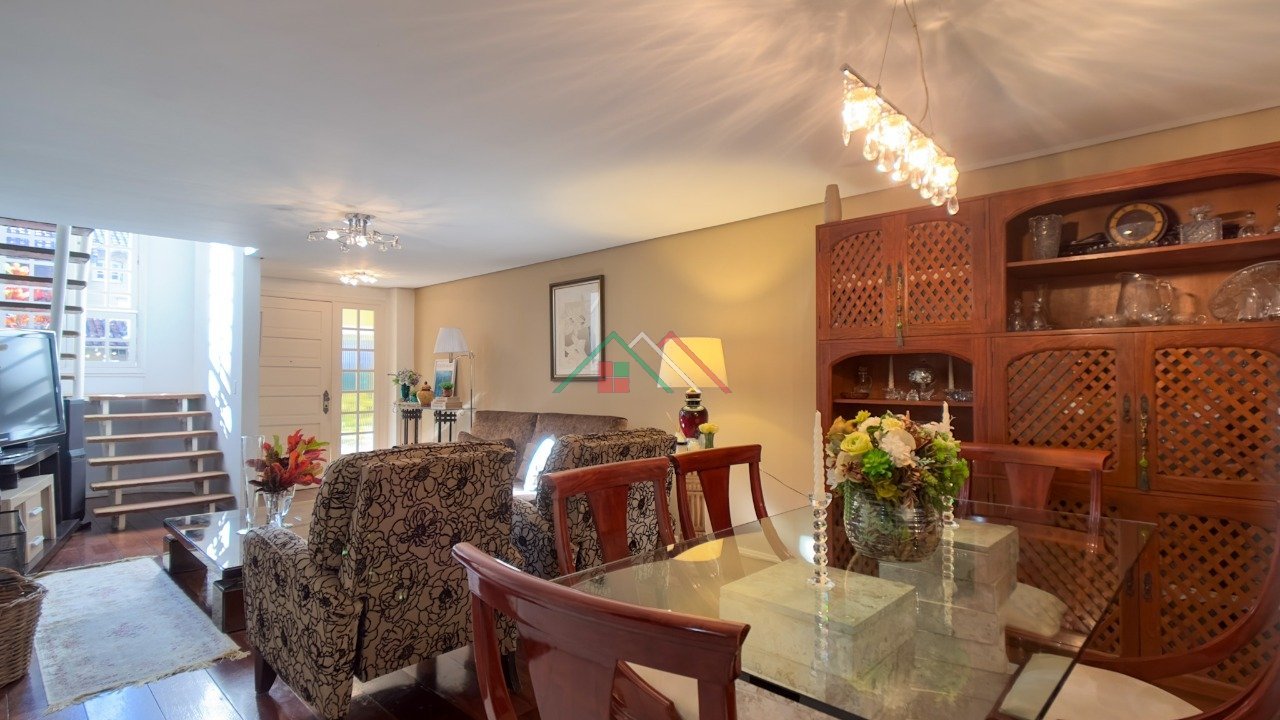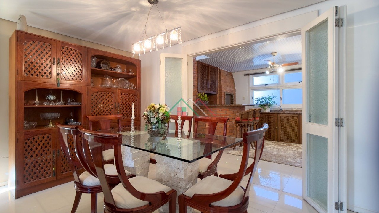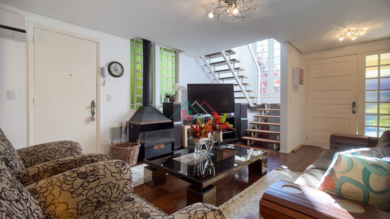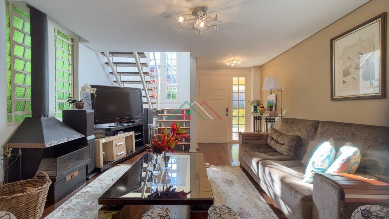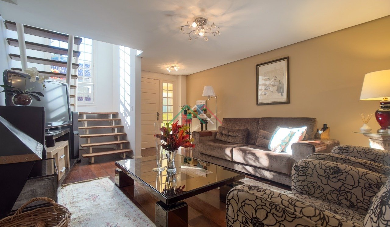 Casa com 3 dormitórios sendo 1 suíte, living para 2 ambientes com lareira, espaço gourmet com churrasqueira, lavabo, banheiro social, copa/cozinha, área de serviço. Garagem coberta para 1 carro e 1 descoberta.