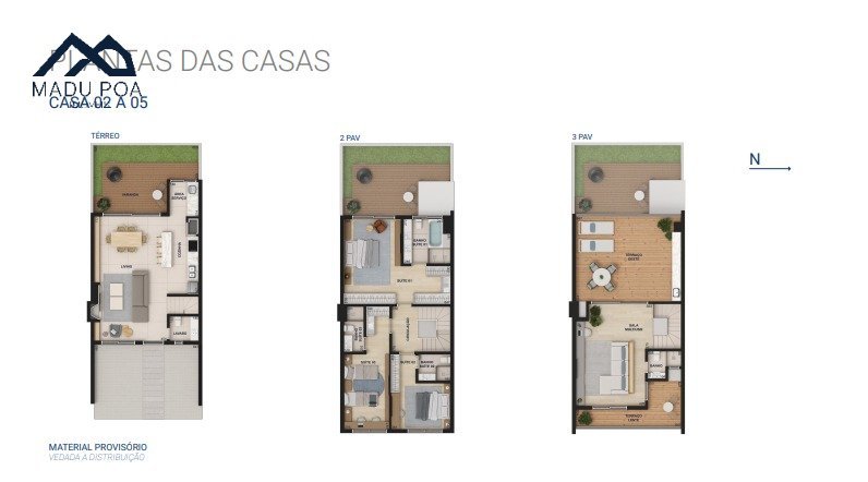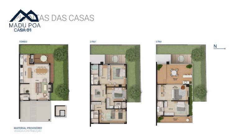 Casas de 293m² a 368m² de área privativa, com 03 suítes, a poucos metros da Orla do Guaíba e do Clube dos Jangadeiros.