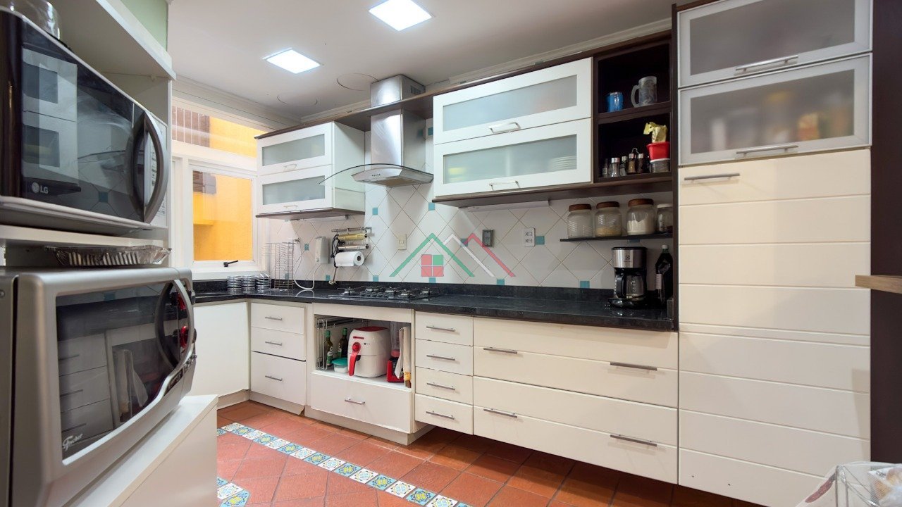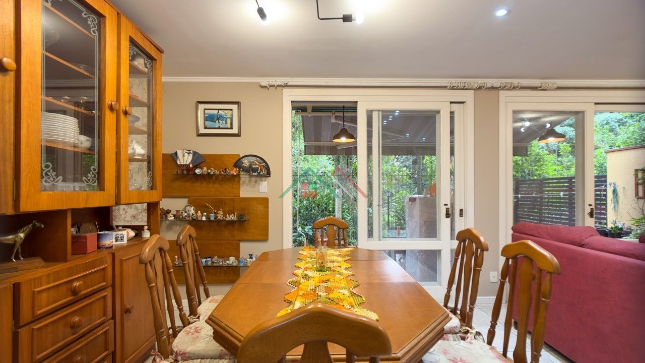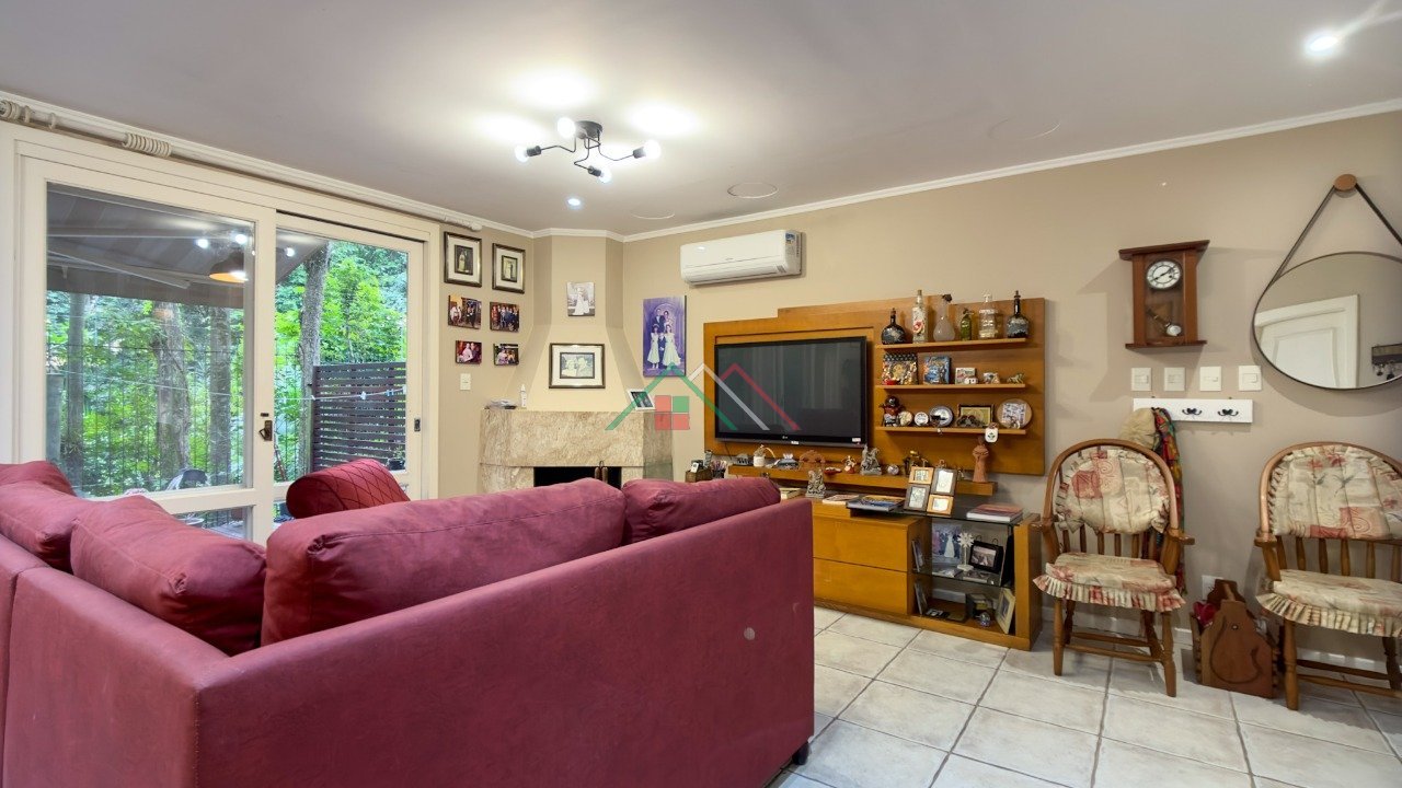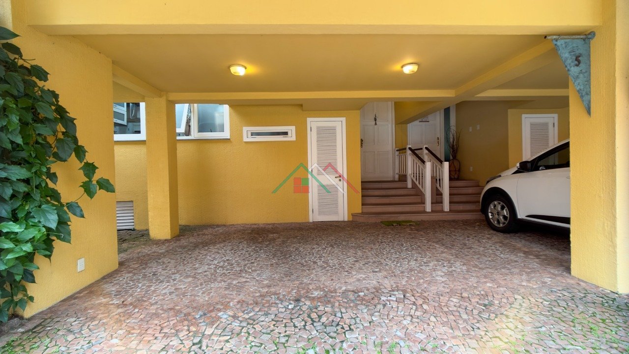 PISO TÉRREO: amplo living com lareira, estar/jantar, cozinha americana, lavabo, lavanderia, pátio com deck, 2 vagas de garagem e ao lado da garagem espaço semi coberto para 2 motos ou carro pequeno.
