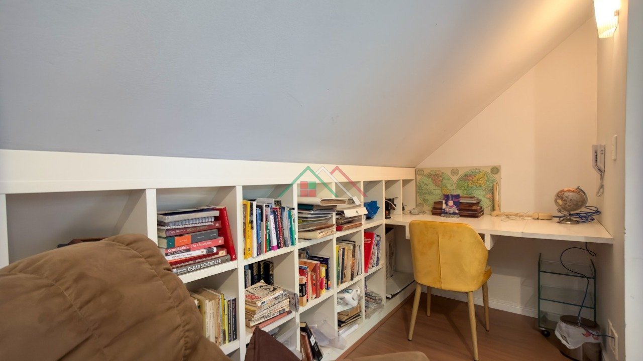 Entre o piso térreo e segundo andar espaço para escritório com sacada ou opção para mais 1 dormitório.