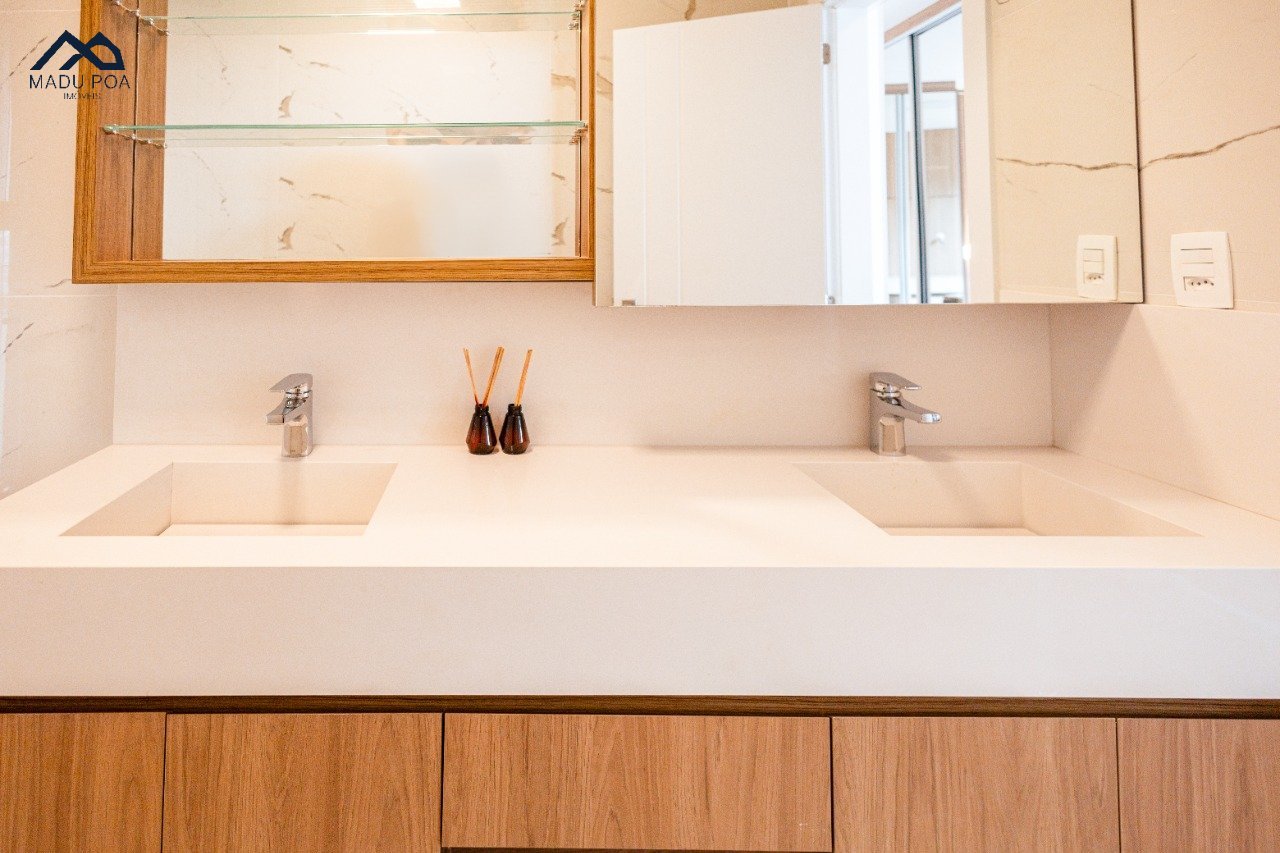 2º Pavimento: Mezanino, três amplas suítes, sendo uma suíte com sacada e banheiro ele/ela. Todos com móveis sob medida e persianas automatizadas.