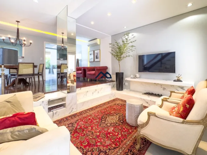 1º Pavimento: Amplo e sofisticado living para dois ambientes, móveis planejados de alto patrão, um ambiente todo integrado, com hall de entrada, lavabo, uma linda cozinha americana, lavanderia e área de serviço separada. Área gourmet com churrasqueira excelente espaço para suas confraternizações, pátio jardim com projeto pronto para uma piscina ao fundo, quatro vagas de garagem sendo duas cobertas.