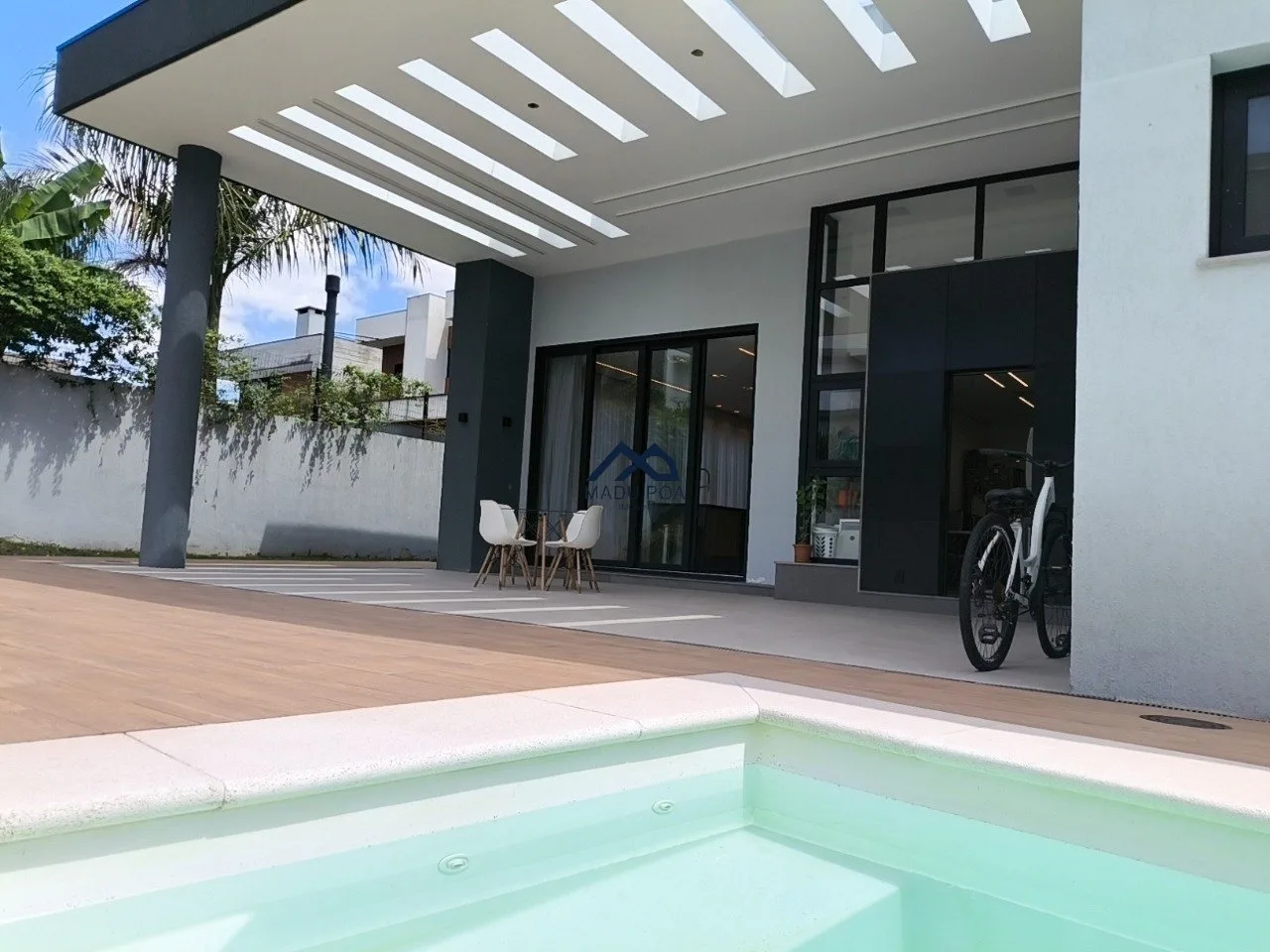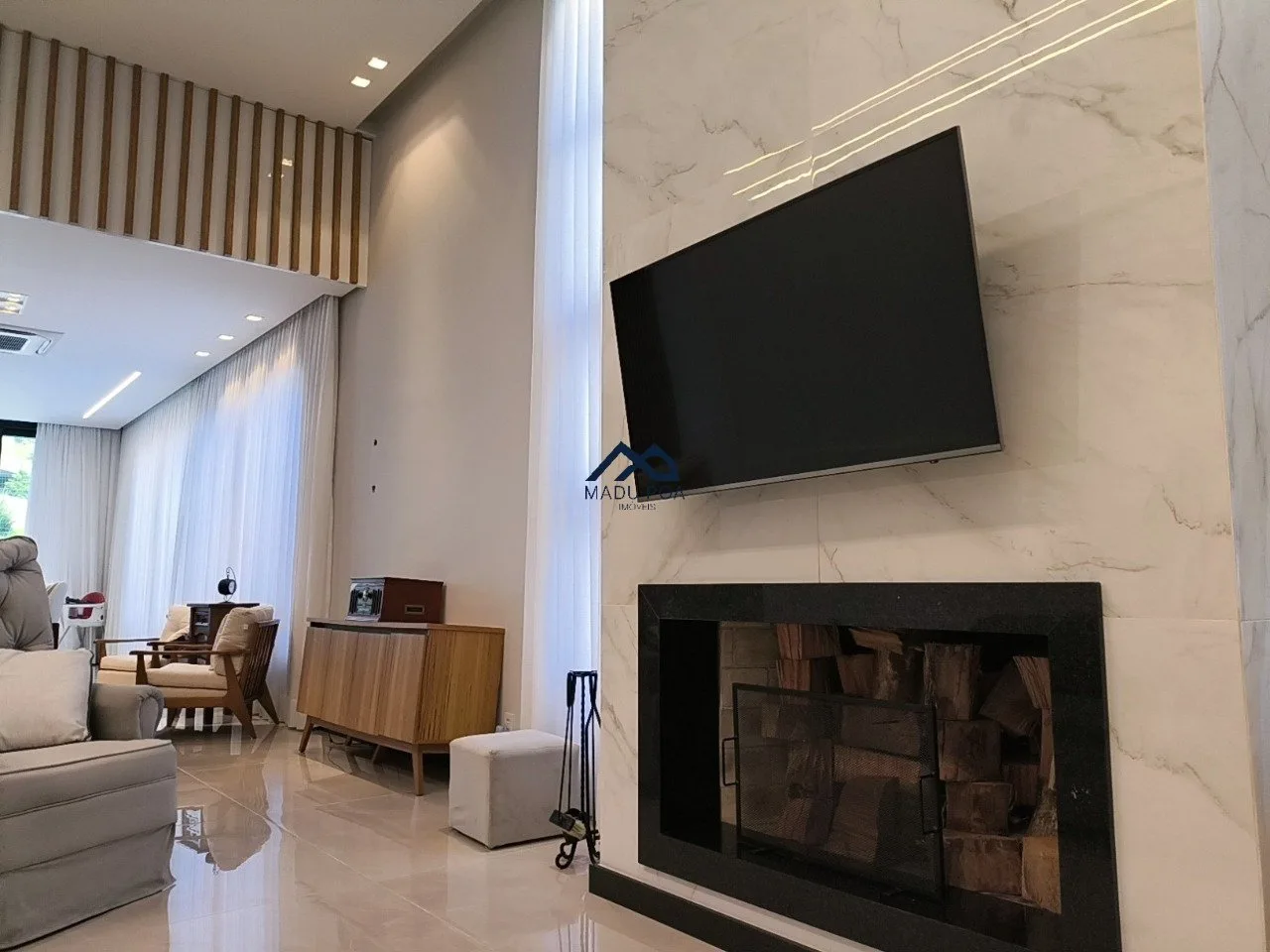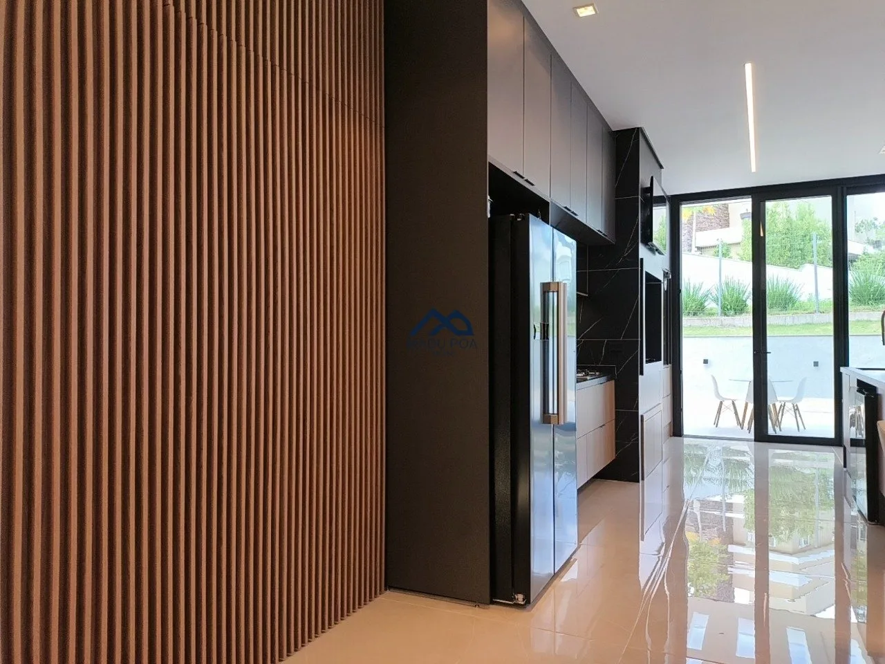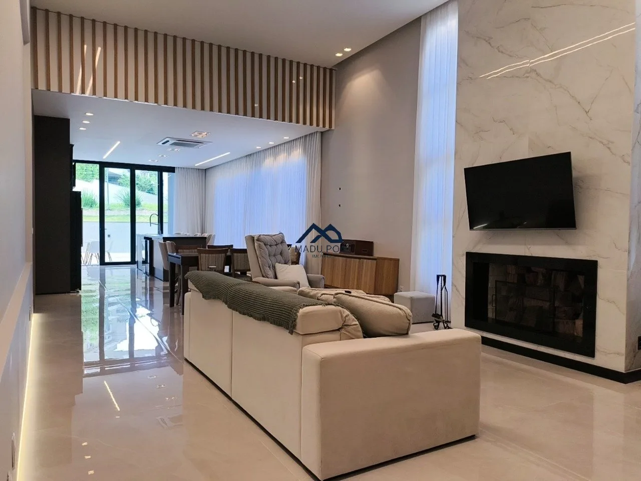 Living para dois ambientes, lavabo, lareira, escritório ou despensa, cozinha em conceito aberto com churrasqueira, espaço gourmet, amplo pátio com piscina banheiro e cozinha auxiliar.