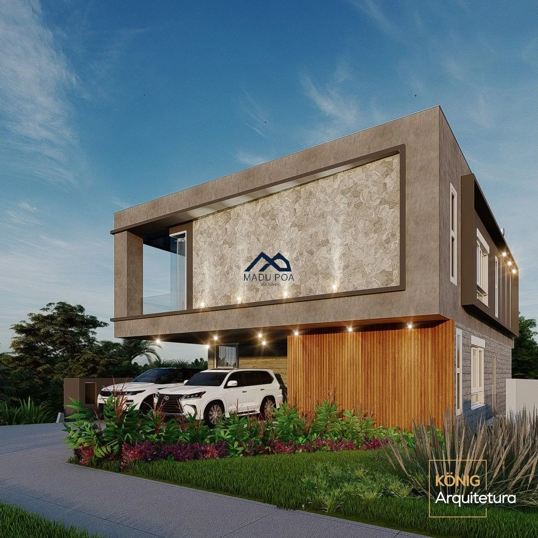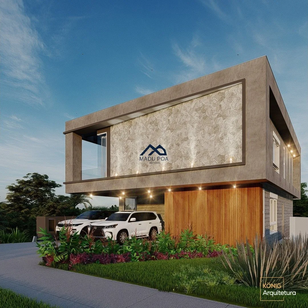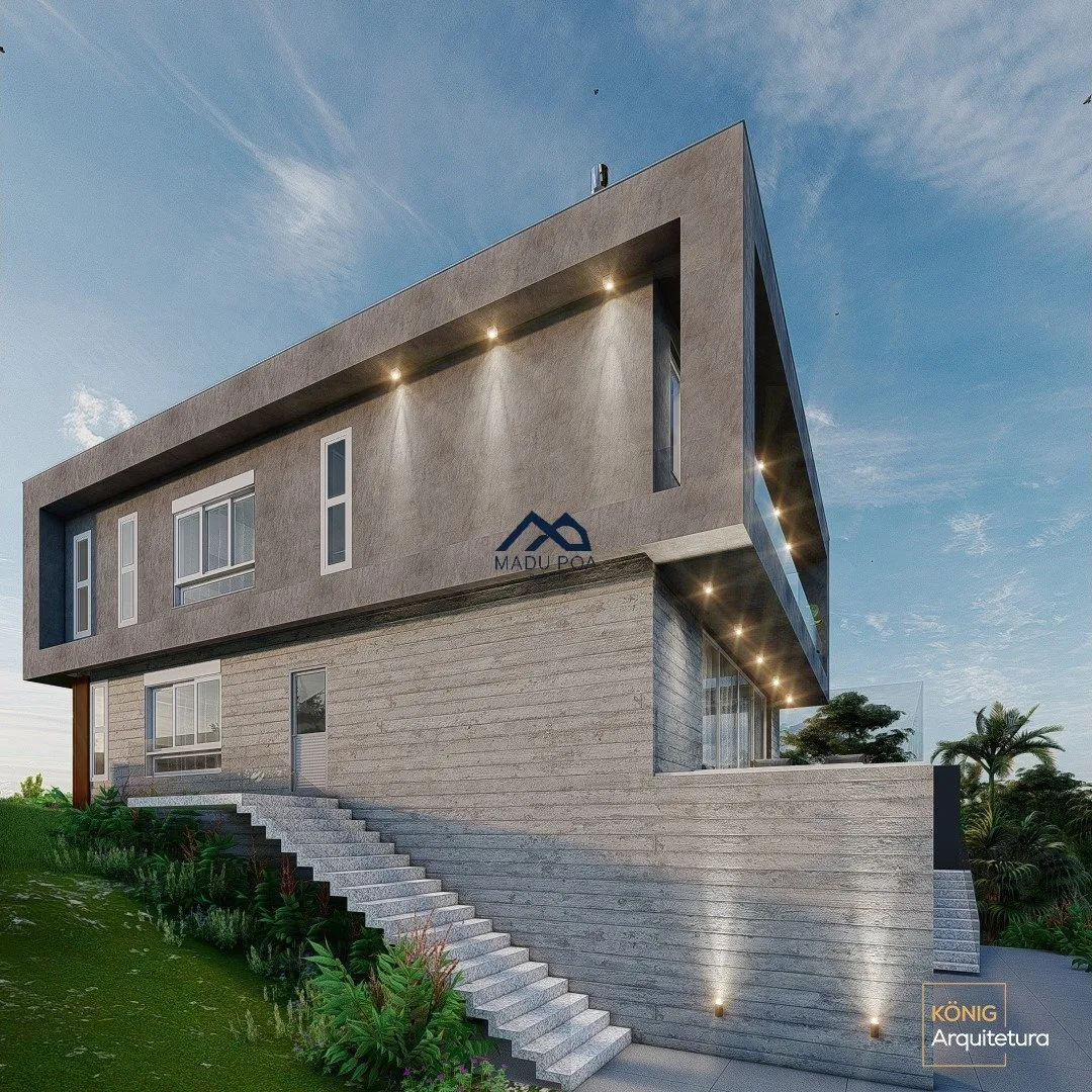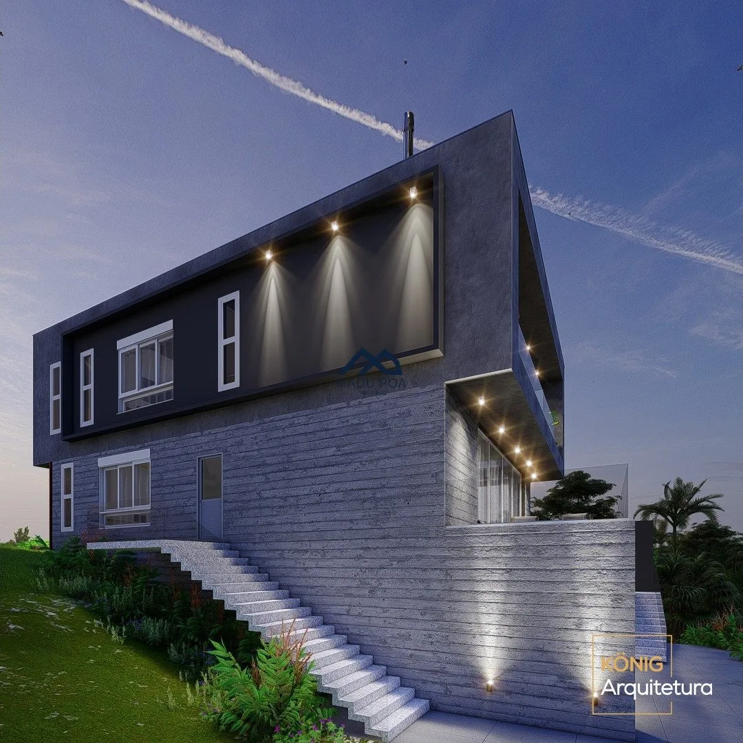 Piso térreo: Sala de estar com lareira, sala de jantar, espaço gourmet com churrasqueira e ilha na cozinha, lavabo, banheiro externo, depósito, despensa e área de serviço. Pátio com espera para piscina. Garagem para 2 carros.
