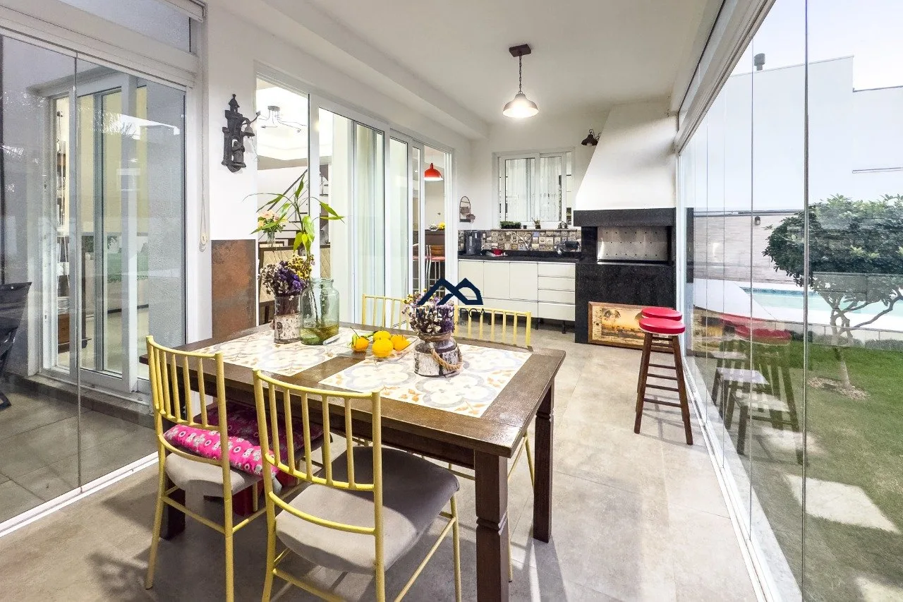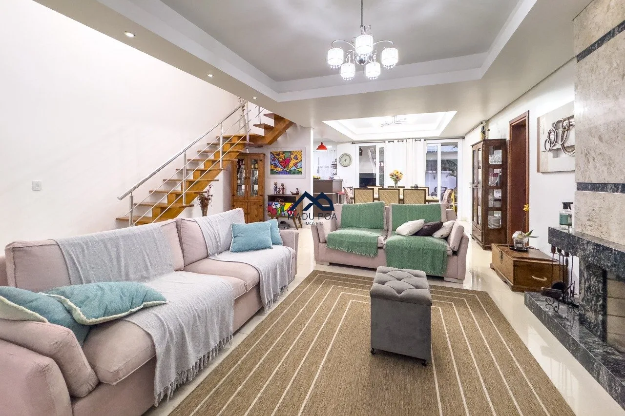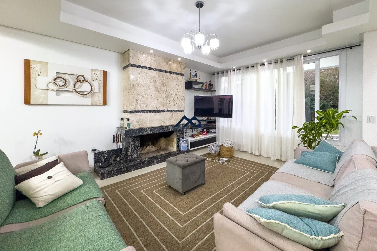 1º Pavimento: amplo living com 3 ambientes com lareira , sacada, sala de jantar , 2 vagas de garagem , lavabo, cozinha americana , área de serviço , espaço gourmet com churrasqueira e piscina.