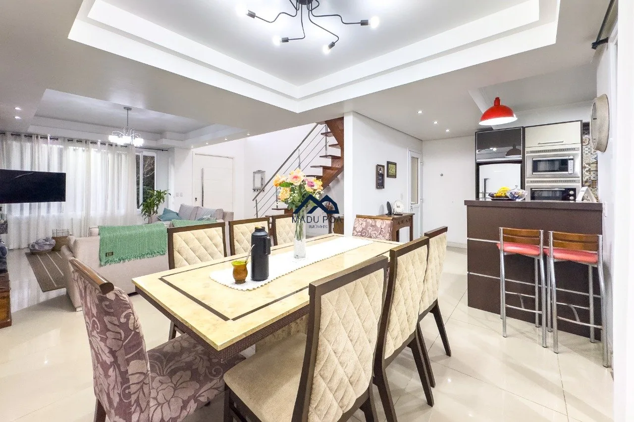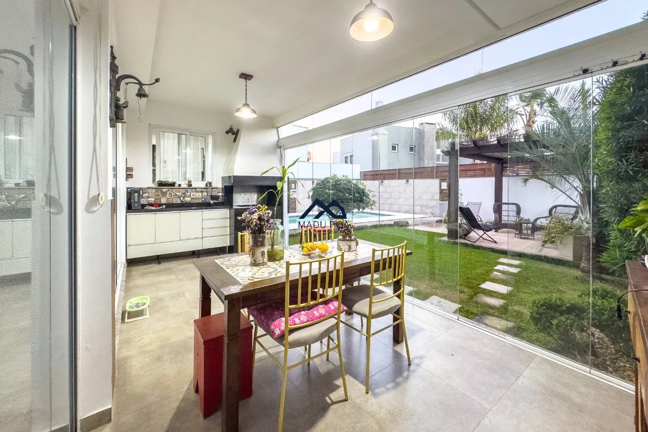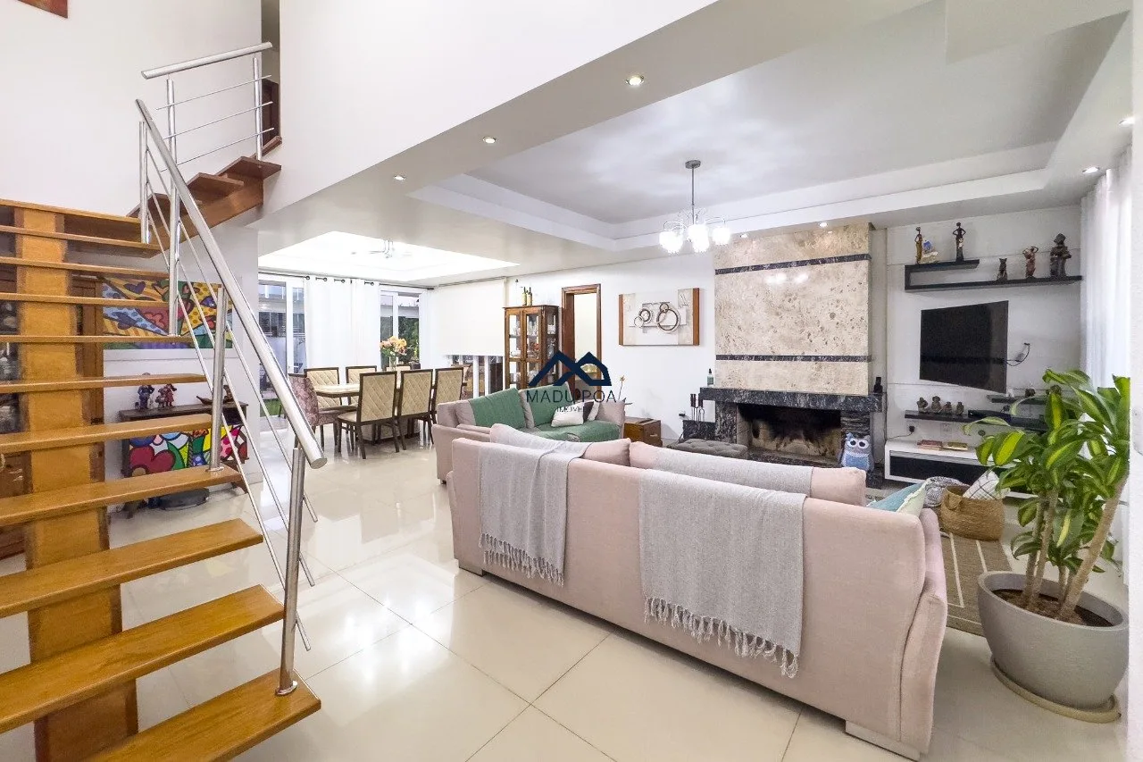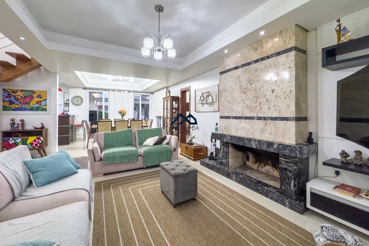 1º Pavimento: amplo living com 3 ambientes com lareira , sacada, sala de jantar , 2 vagas de garagem , lavabo, cozinha americana , área de serviço , espaço gourmet com churrasqueira e piscina.