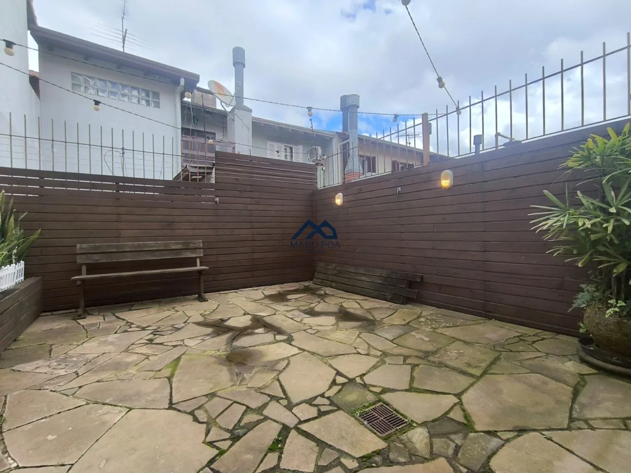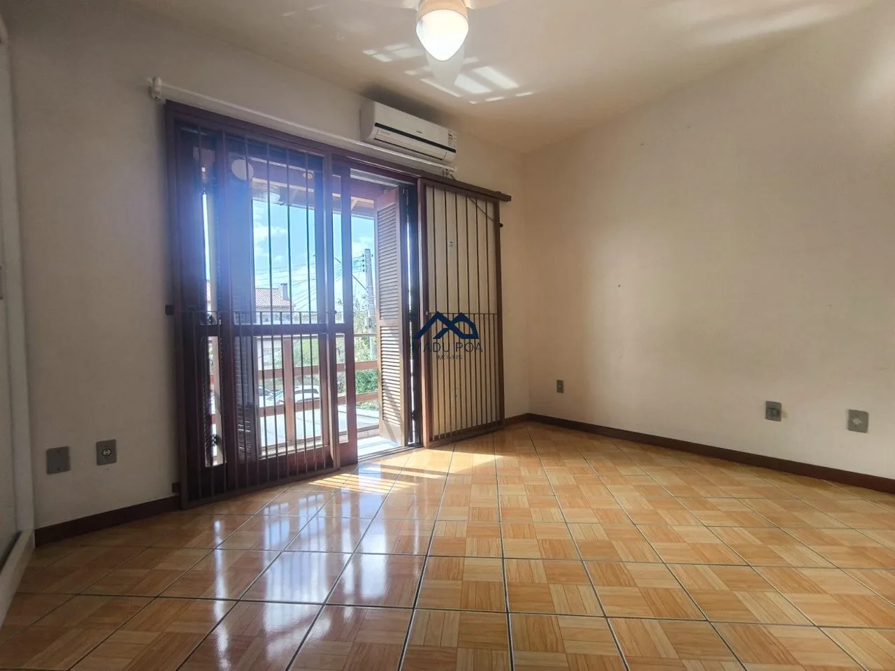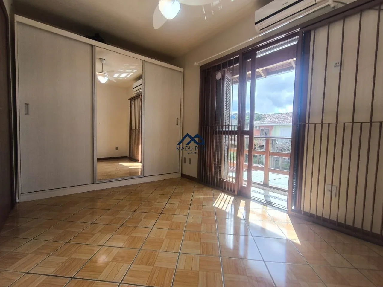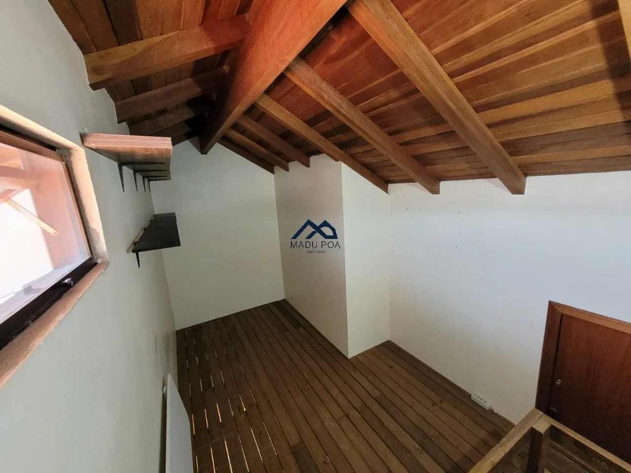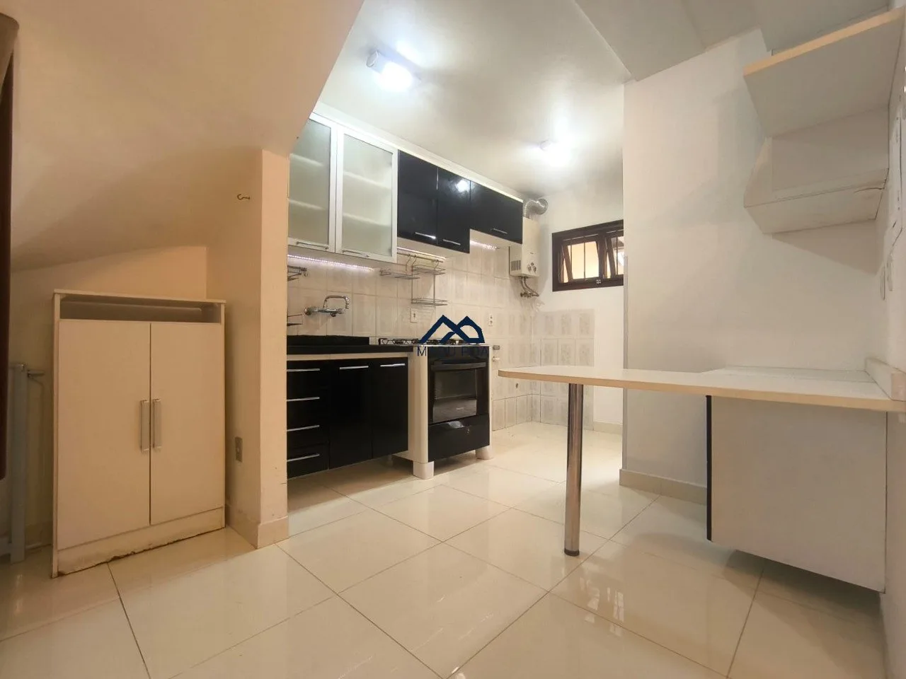 São 3 dormitórios um deles no mezanino e banheiro social. Ficam na casa, rack, roupeiro, luminárias, três Splits e aquecimento a gás.