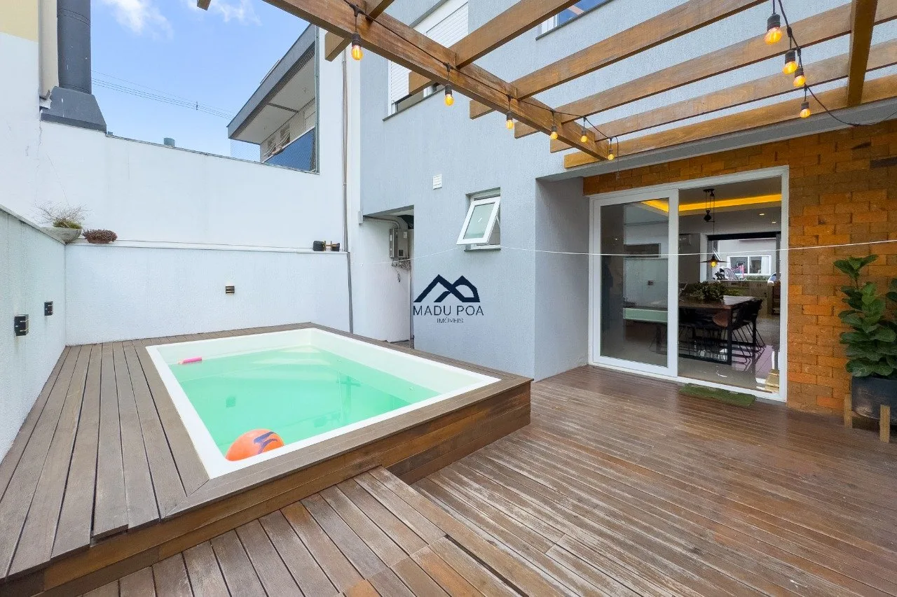 Casa em condomínio a venda no Lagos de Nova Ipanema com 220m², semimobiliado, living integrado, coinha com churrasqueira e pátio com piscina.