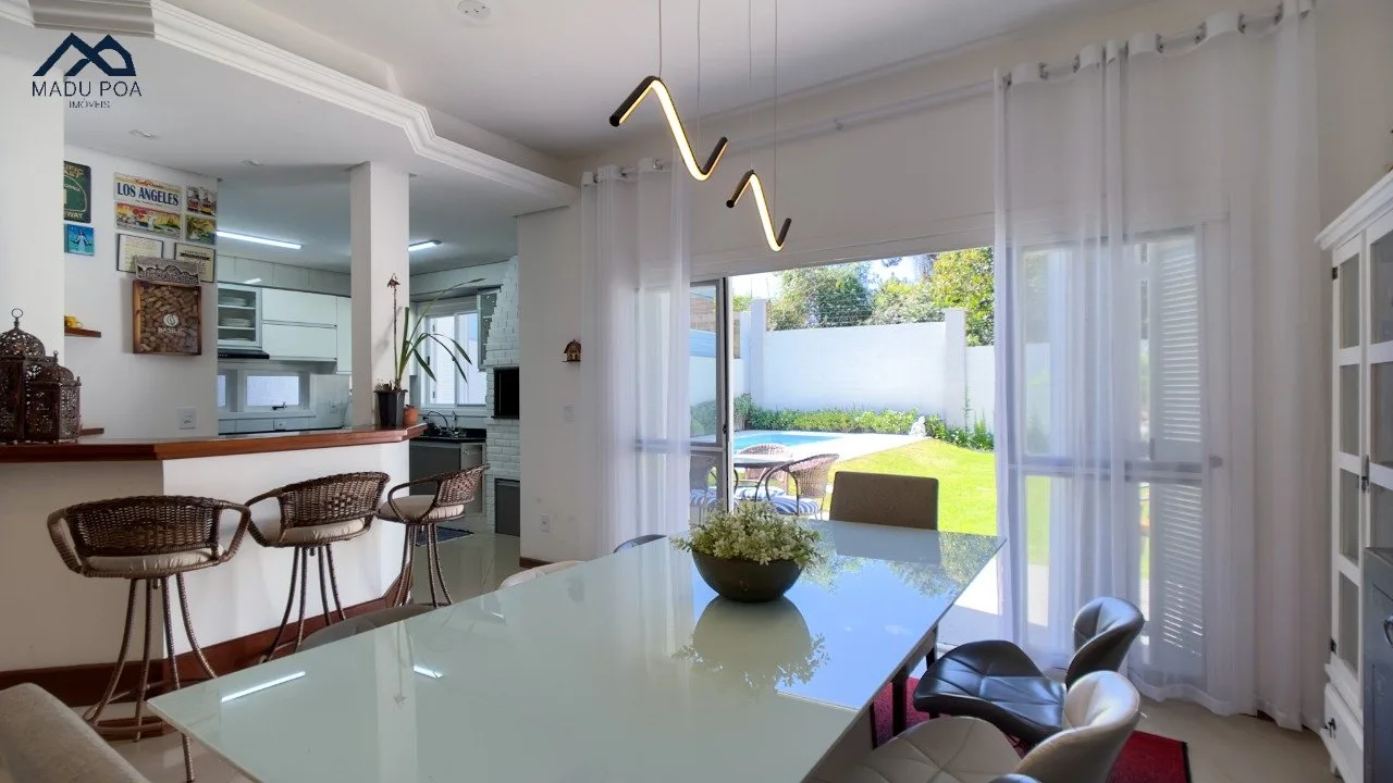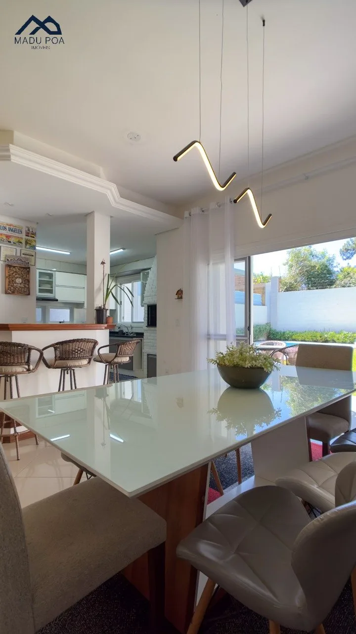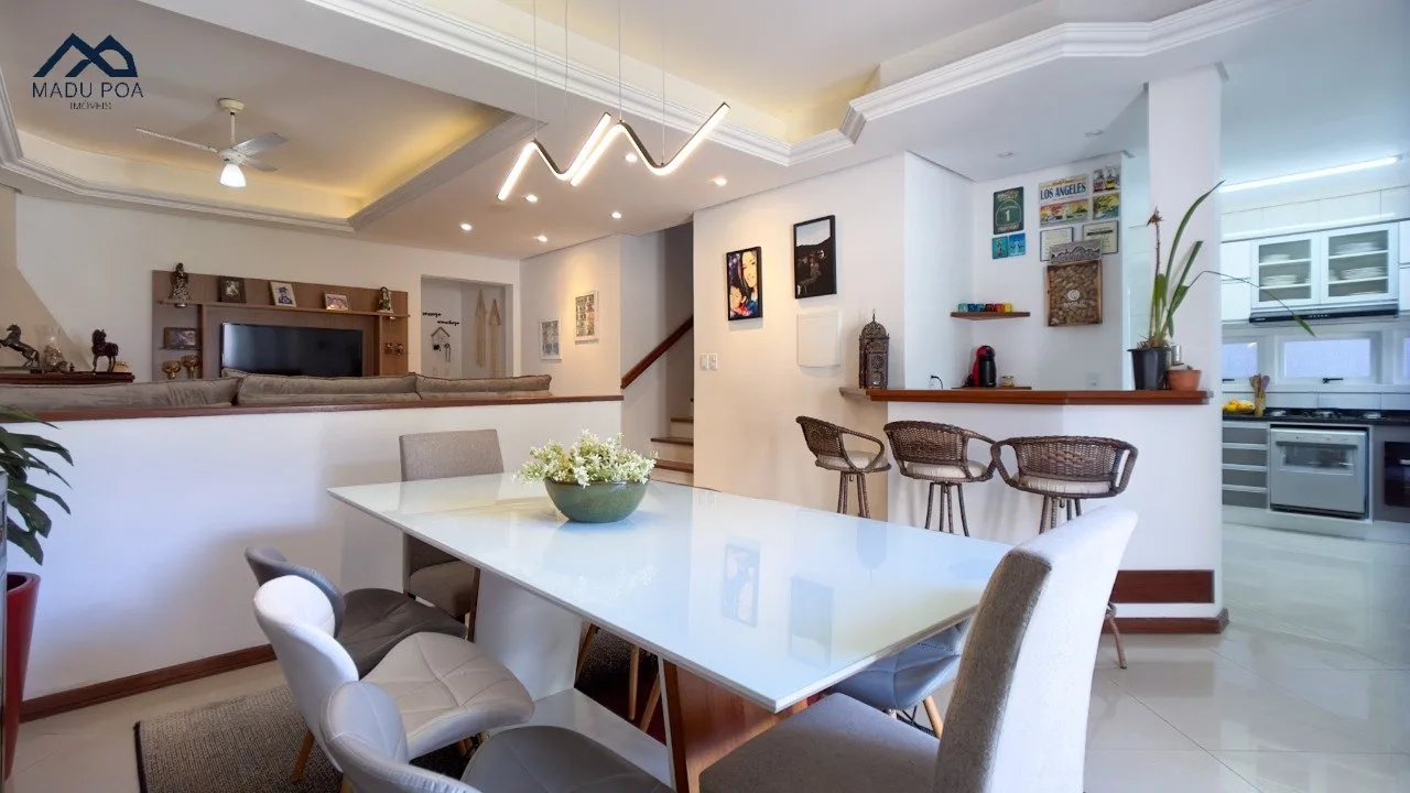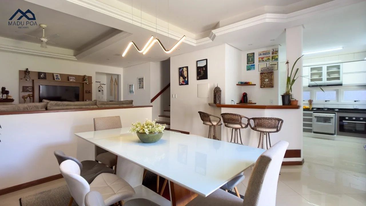 Pavimento térreo com um conceito aberto, criando uma integração perfeita entre a espaçosa sala de estar, sala de jantar e a cozinha bem equipada, ideal para o convívio social.